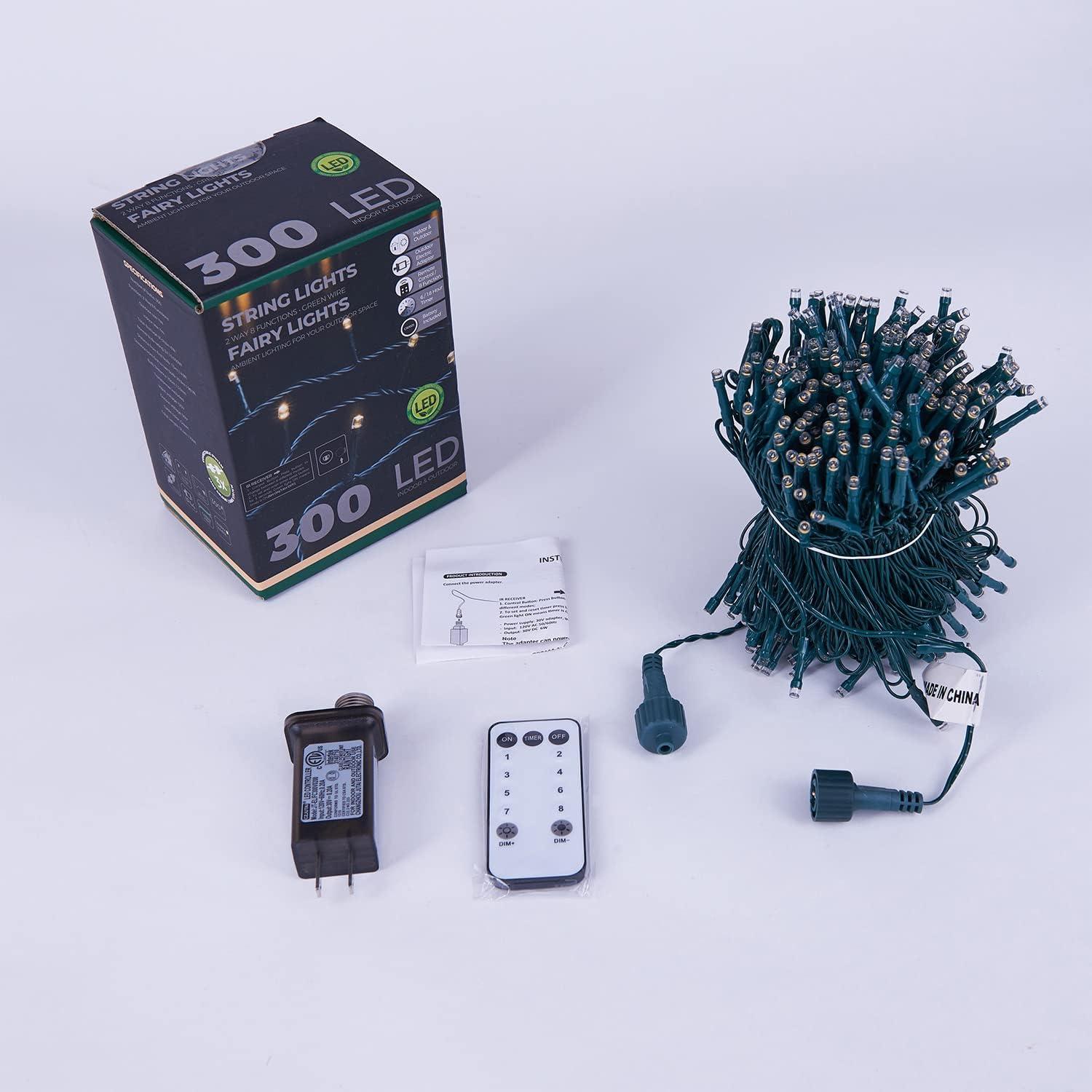 - Perfect holiday decorations: The warm white 300 LED christmas lights is perfect for spice up your home decoration and add welcome feelings to your party. They illuminate a dark corner and create a romantic sentiment. You can decorated the room with our LED string lights to celebrate family’s birthday or holiday. You can lit up a christmas tree under 6ft with one pack of this Green Wire Christmas Lights.