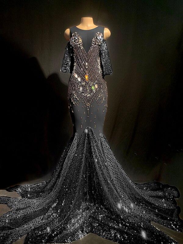 2021 New Arrivals Sale Free DHL High Quality Celebrity Gold Shining Mesh Beading Trumpet Long Dress Bodycon Party Dancer Costume