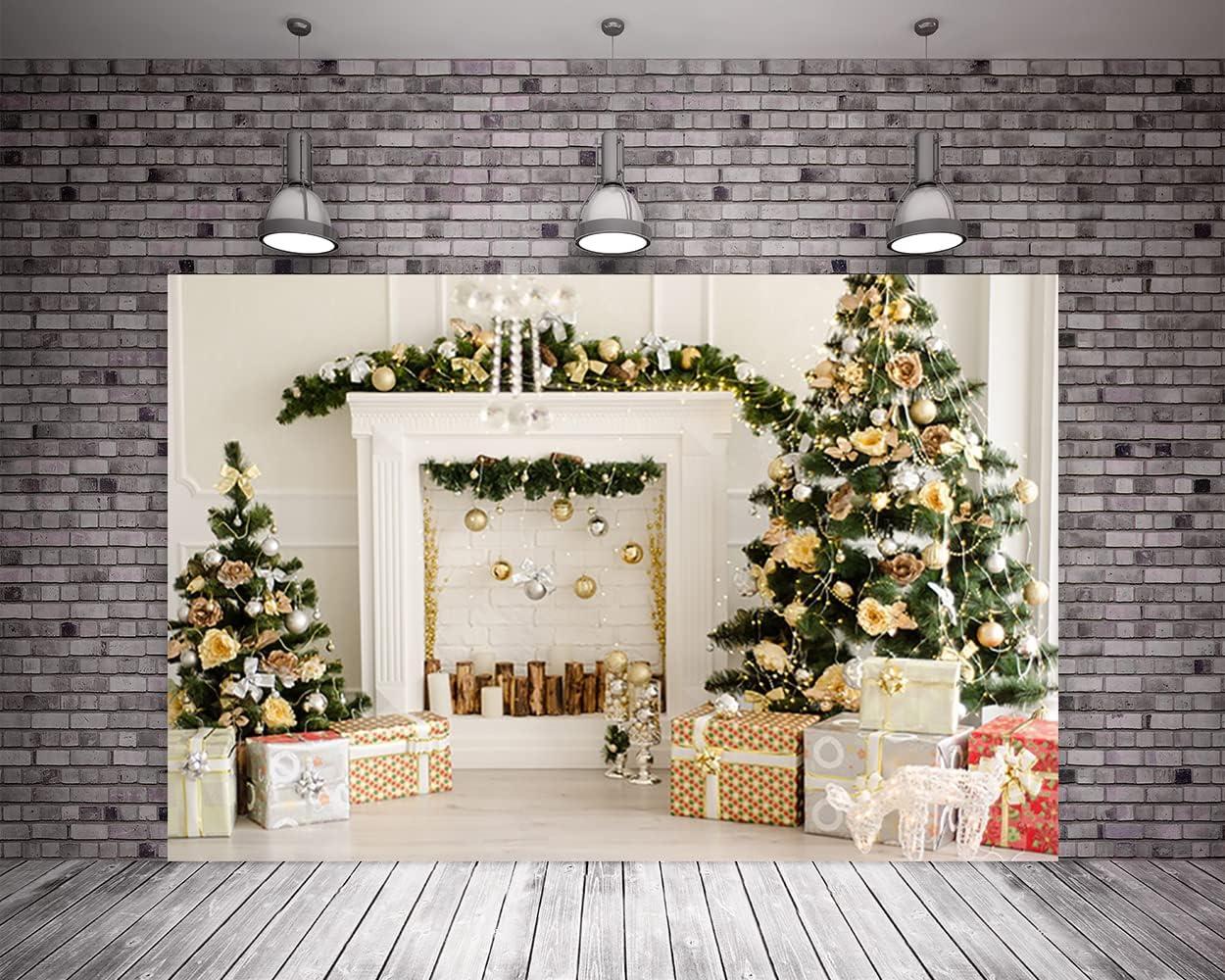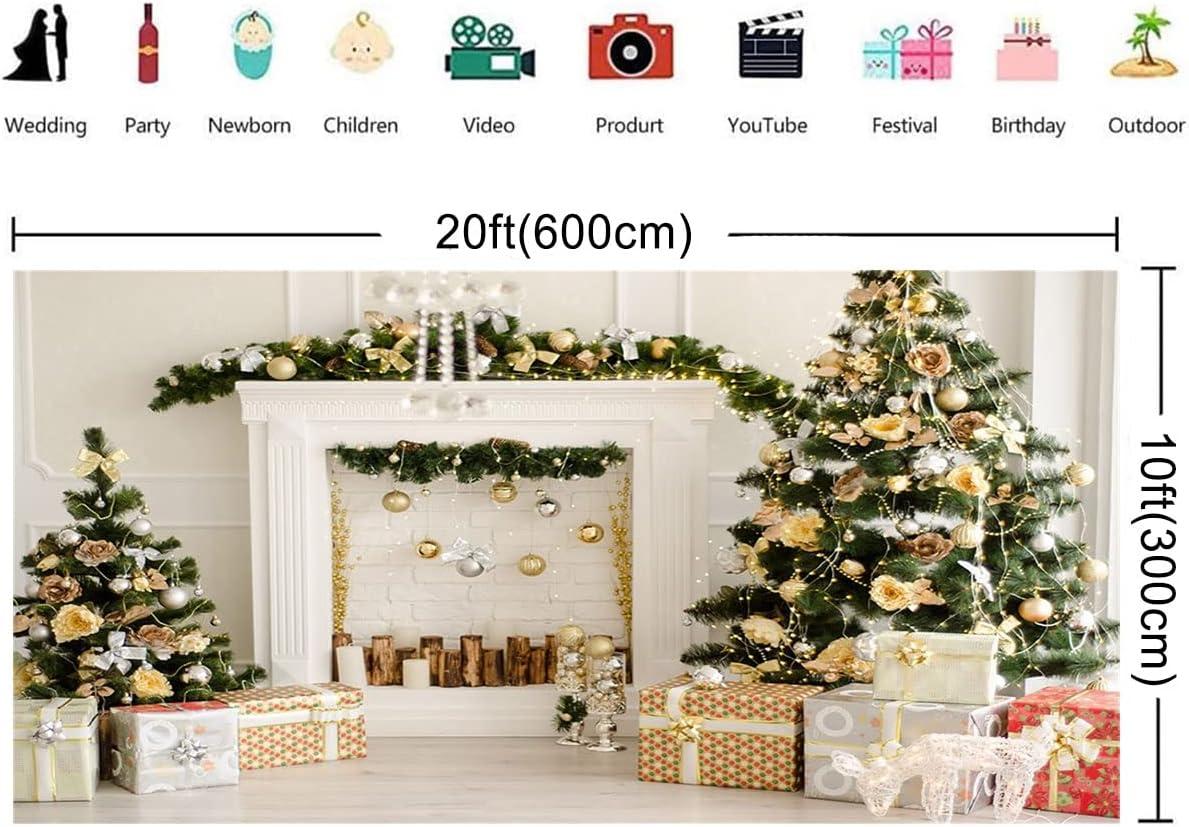 20x10ft Christmas Fireplace Photography Background for White Brick Wall Christmas Tree Backdrops Small Colored Lights Christmas Party Decoration Banner