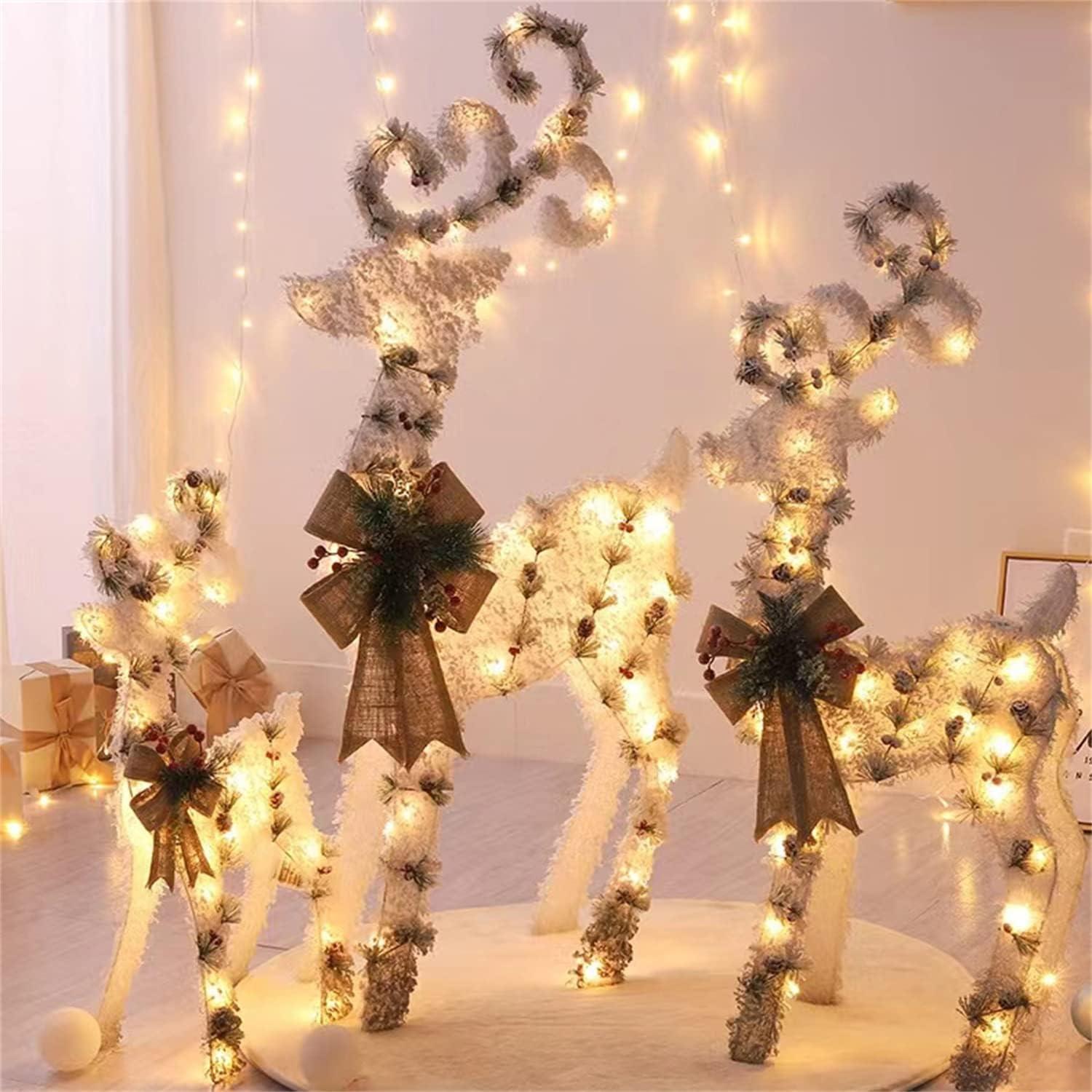 HJDSUDU Flocked Christmas Deer, 3 Piece Lighted Rustic Deer Family with LED Lights,3 Piece Reindeer Family Lighted Deer Set for Christmas Decorations Yard Art