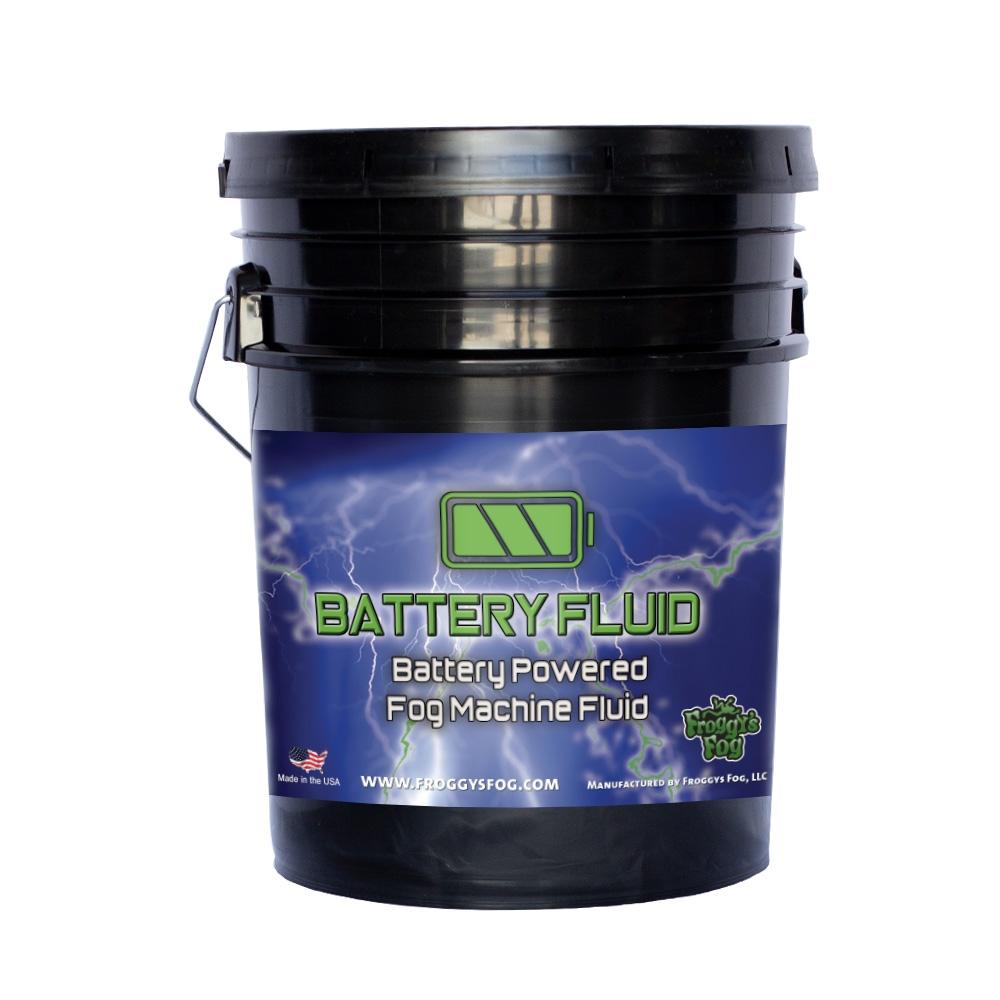 Froggys Fog Battery Fluid is a high concentration formula designed especially for battery-operated fog machines. The no residue formulation gives thick and odorless output with good hang time. Suitable for a wide variety of battery fog machines, this formula is excellent for quick fog effects, photoshoots, prop design, character performances or mechanical systems testings. 5 Gallon Pail