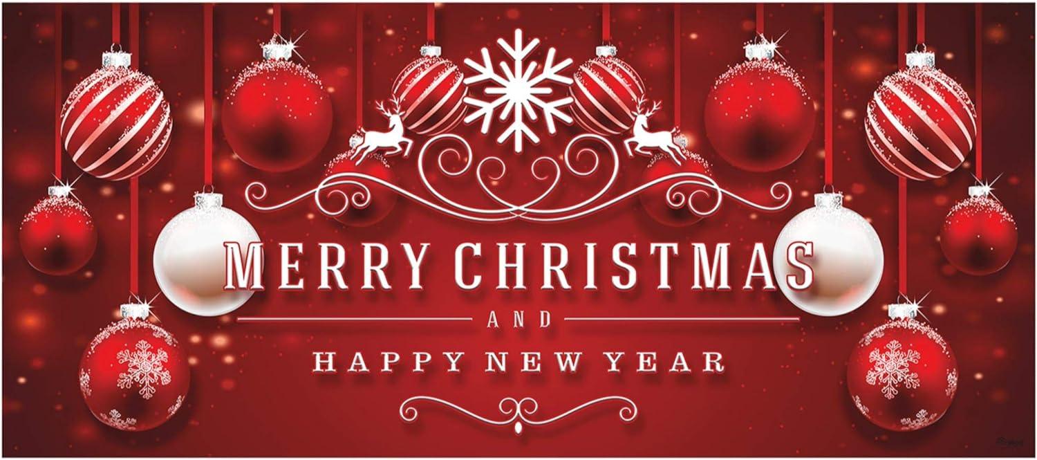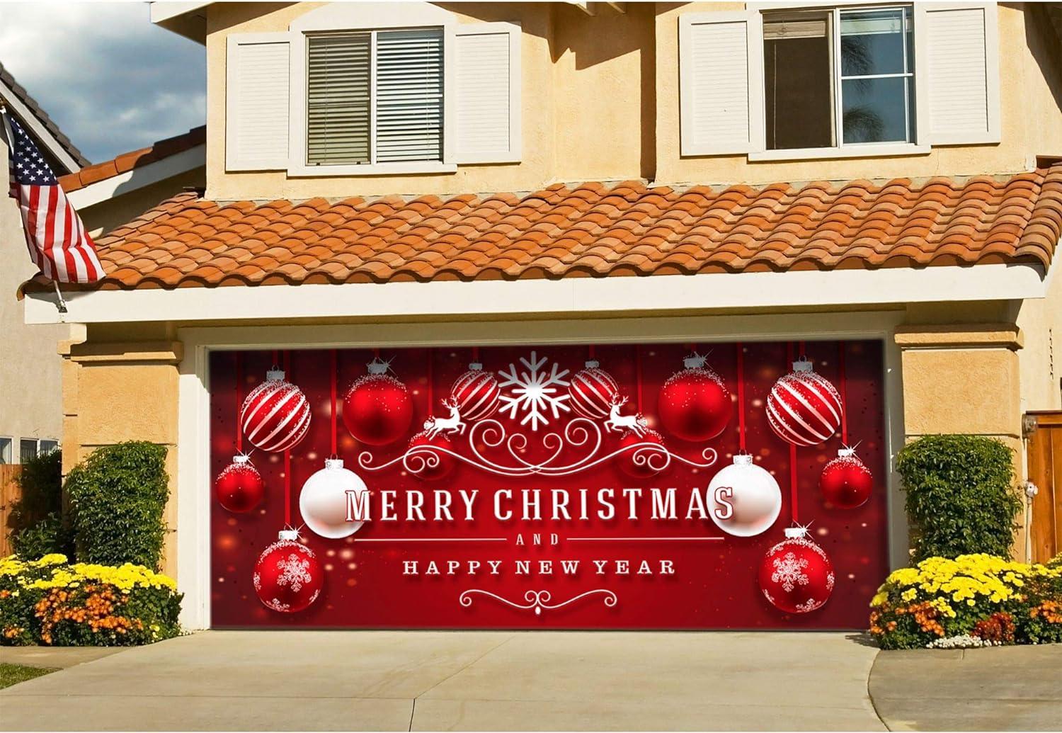 7′ x 16′ Red and White Merry Christmas and Happy New Year Outdoor Double Car Garage Door Banner