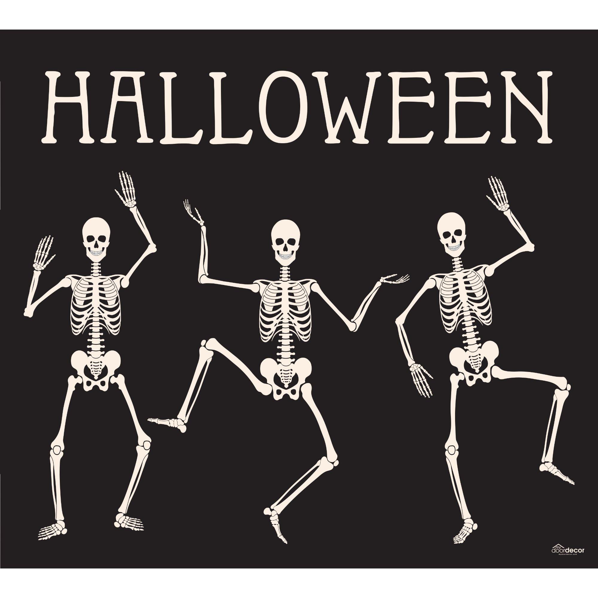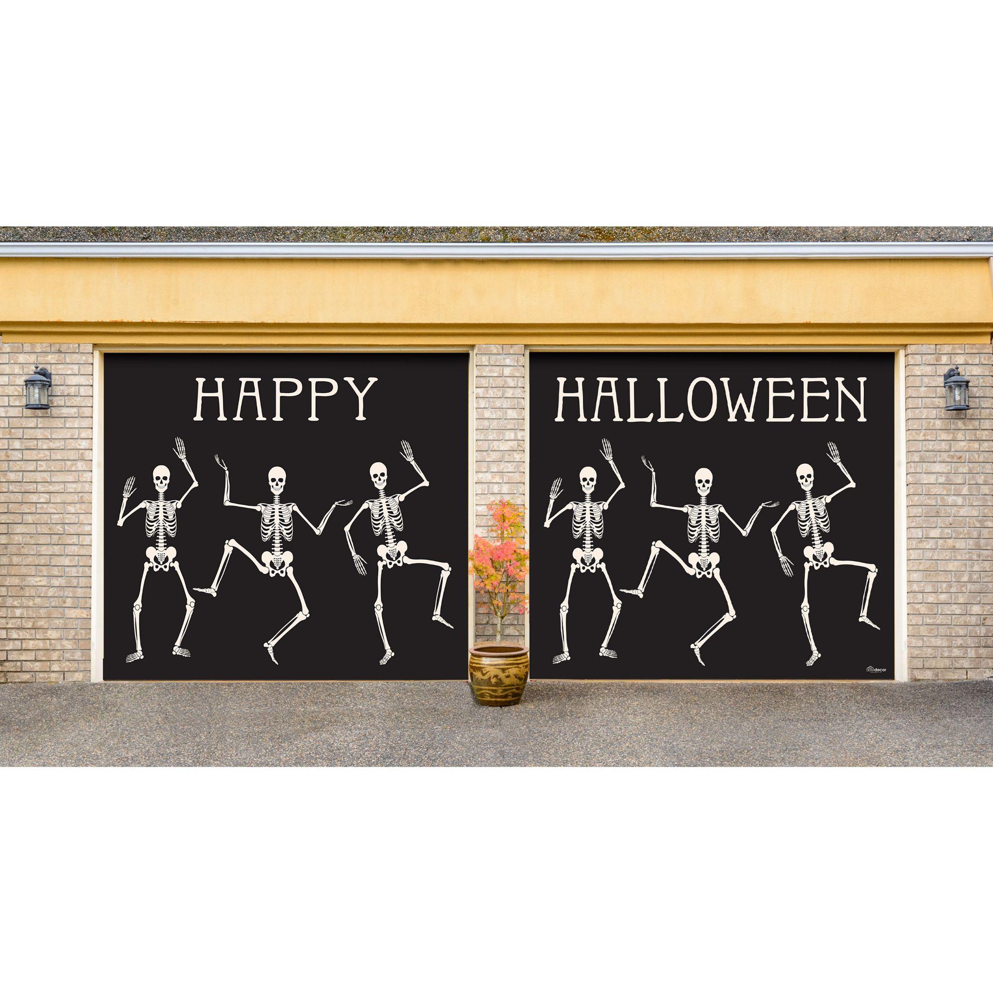 7′ x 8′ Black and White Skeleton Dancing Halloween Split Car Garage Door Banner