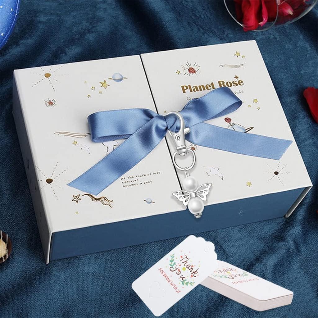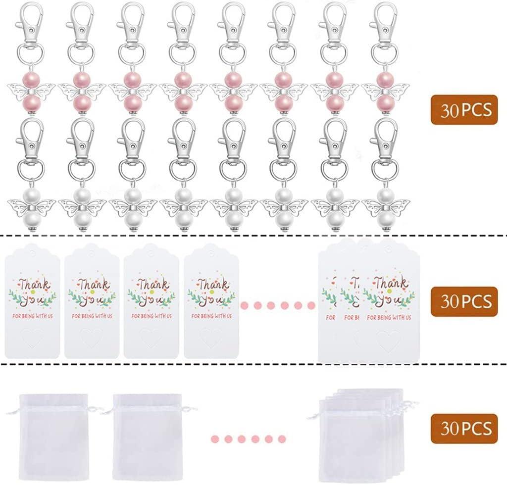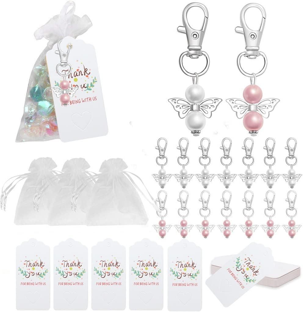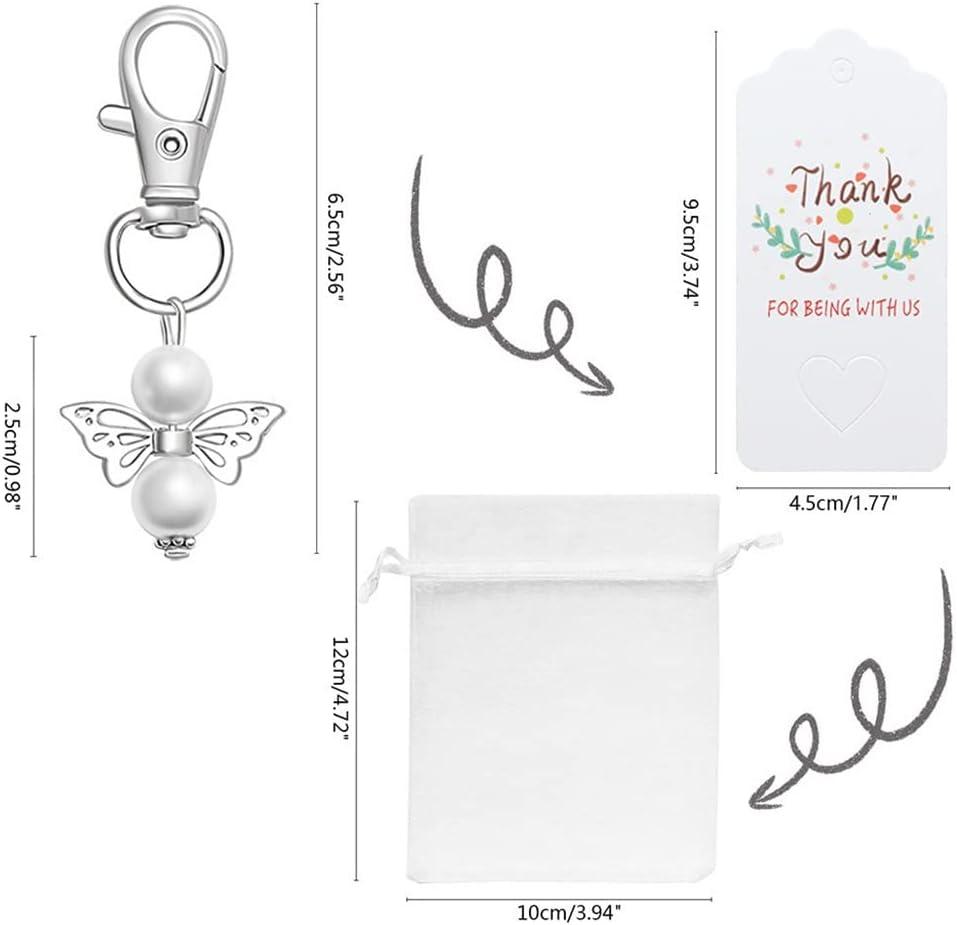 • The keychain pendant is made of shiny artificial pearls and zinc alloy. The uniquely designed angel wing thank you label.