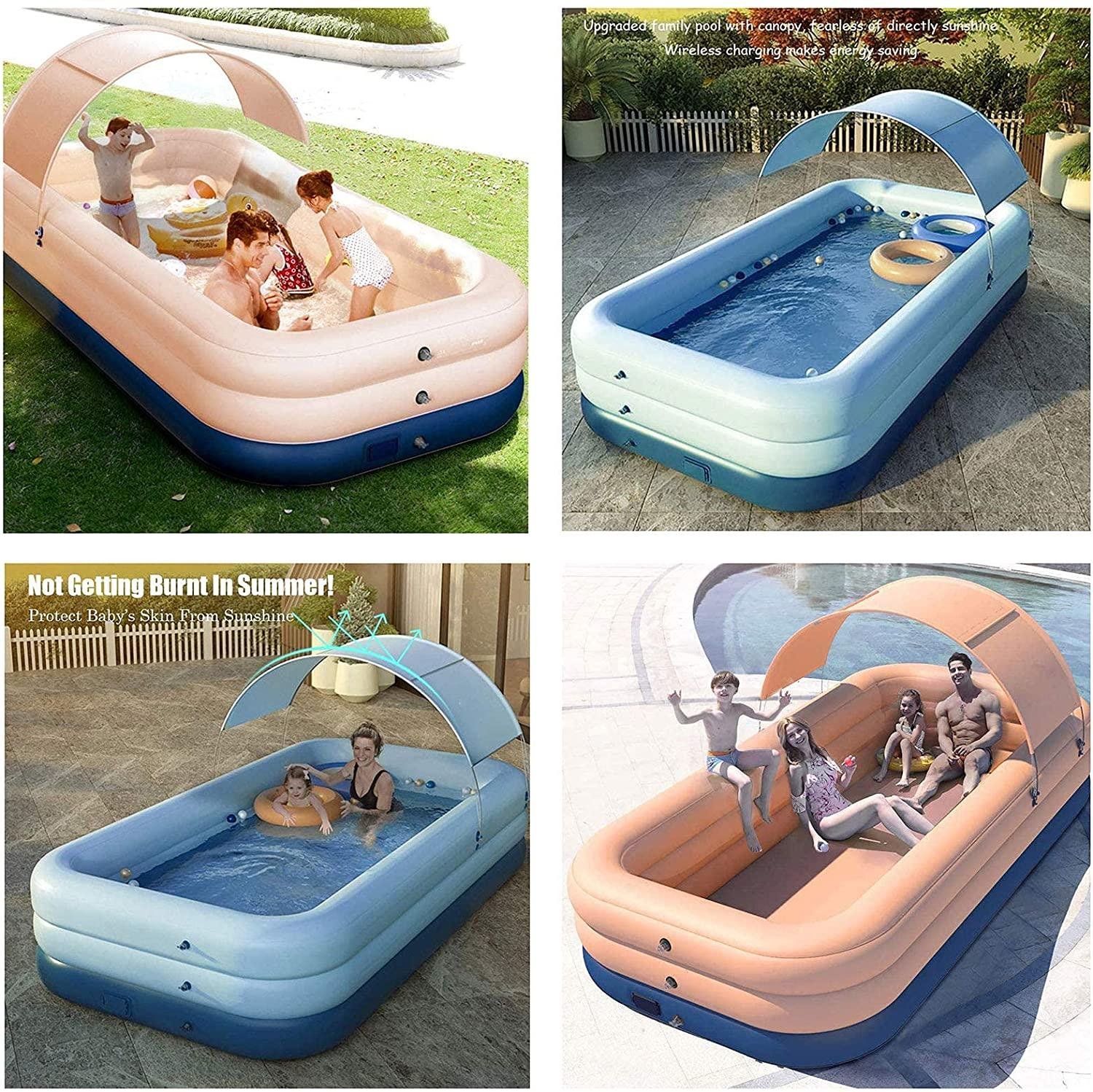• Inflatable Family Swimming Pool Above Ground, Blow Up Rectangular Pool with sun shade for Kids Teens & Adults,Backyard Summer Water Party Center