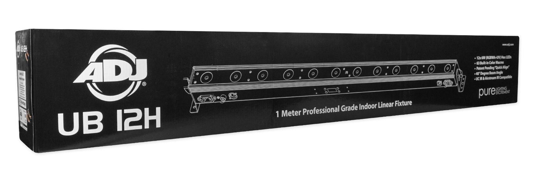 <strong>Package Includes:</strong><ul>(1) American DJ ADJ UB 12H 41.75″ RGBAW+UV Dance Floor Stage LED DMX Wash Light Bar(1) Rockville R700 Fog/Smoke Machine w/ Remote+Fluid Quick Heatup, Thick Fog</ul><b>Description of UB 12H:</b><p>The ADJ UB 12H is a 41.75-inch (1-meter) professional grade indoor linearfixture powered by twelve 6-Watt HEX (6-IN-1) LEDs. Its bright chromatic40-degree beam angle provides vibrant TRI color mixing designed for washingstages, walls and dance floors. Its rugged casing with patent pending QuickAlign end locking allows for a seamless output of light with no breaks of color.</p><p><b>Specifications:</b></p><ul><li>American DJ ADJ UB 12H 41.75″ RGBAW+UV Dance Floor Stage LED DMX Wash Light Bar</li><li>41.75-inch (1 meter) indoor Linear Bar with 12x 6W HEX LEDs (RGBAW+UV)</li><li>Great for Stage or Wall Washing!</li><li>6 DMX Channel Modes: 3, 5, 6, 7, 8 or 20 channels</li><li>5 operational modes: Auto (Program Run), Sound Active, RGBAW+UV Dimmer, Static Color and DMX-512 Mode</li><li>3 or 6-Section Pixel control </li><li>Patent Pending Quick Align (Magnetic) </li><li>Beam Angle: 40 degrees</li><li>Flicker Free</li><li>4-Button DMX LED Display </li><li>35 built-in Color Macros</li><li>LED pulse & strobe effect</li><li>Electronic Dimming: 0-100%</li><li>Includes mounting brackets to mount on a wall or set on the ground</li><li>Compatible with the ADJ UC IR wireless remote (included) and the Airstream IR APP</li><li>Long Life LEDs (Rated at approximately 50,000 hrs.)</li><li>Power Draw: 88W @ 120V.</li><li>Linkable: DMX via 3-pin XLR cable; Power via IEC. Daisy-chain power (Up to 7 UB 12H fixtures max., @ 120V can be power linked)</li><li>With Wired Digital Communication Network</li></ul><p><b>Description of </b><strong>R700:</strong></p>The Rockville R700 fog machine is a beast of a machine! This machine is around the same size as the Chauvet H700 machine and the American DJ VF400 machine. We feel ours is better for many reasons. We include both a wired remote control as well as a wireless timer remote. The wireless timer remote is going to be your best friend! You can hit a single button and the machine will disperse fog for 30 seconds. The fog will stay in the air for a while, and every now and then you can hit the timer remote button again.<p><strong>Includes:</strong></p><ul><li>1 x R700 Top Quality Fog Machine</li><li>1 x Wired Remote</li><li>1 x Wireless Timer Remote</li><li>1 x pint of Fluid</li><li>1 x Warranty Card</li><li>1 x User Manual</li></ul><p><strong>Features:</strong></p><ul><li>Output: capacity 3,000cfm (cubic feet per minute</li><li>3.5 minute start time (fastest on the market for a similar priced unit)</li><li>Manual fog button</li><li>Wired remote included </li><li>Wireless timer remote included. Hit one button and 30 seconds of fog will come out</li><li>Water-based fogger compatible with standard fog fluid made by Rockville, Chauvet, American DJ, Visual Effects, and other famous brands</li><li>10 Fluid ounce tank capacity</li><li>Fluid consumption: 10 Fluid Ounces per hour </li><li>Our fog machine will output literally twice as much as other machines being sold by other famous brands. Ours is way better. If you are not happy with it, we will send you a pre-paid label and give you all of your money back</li>