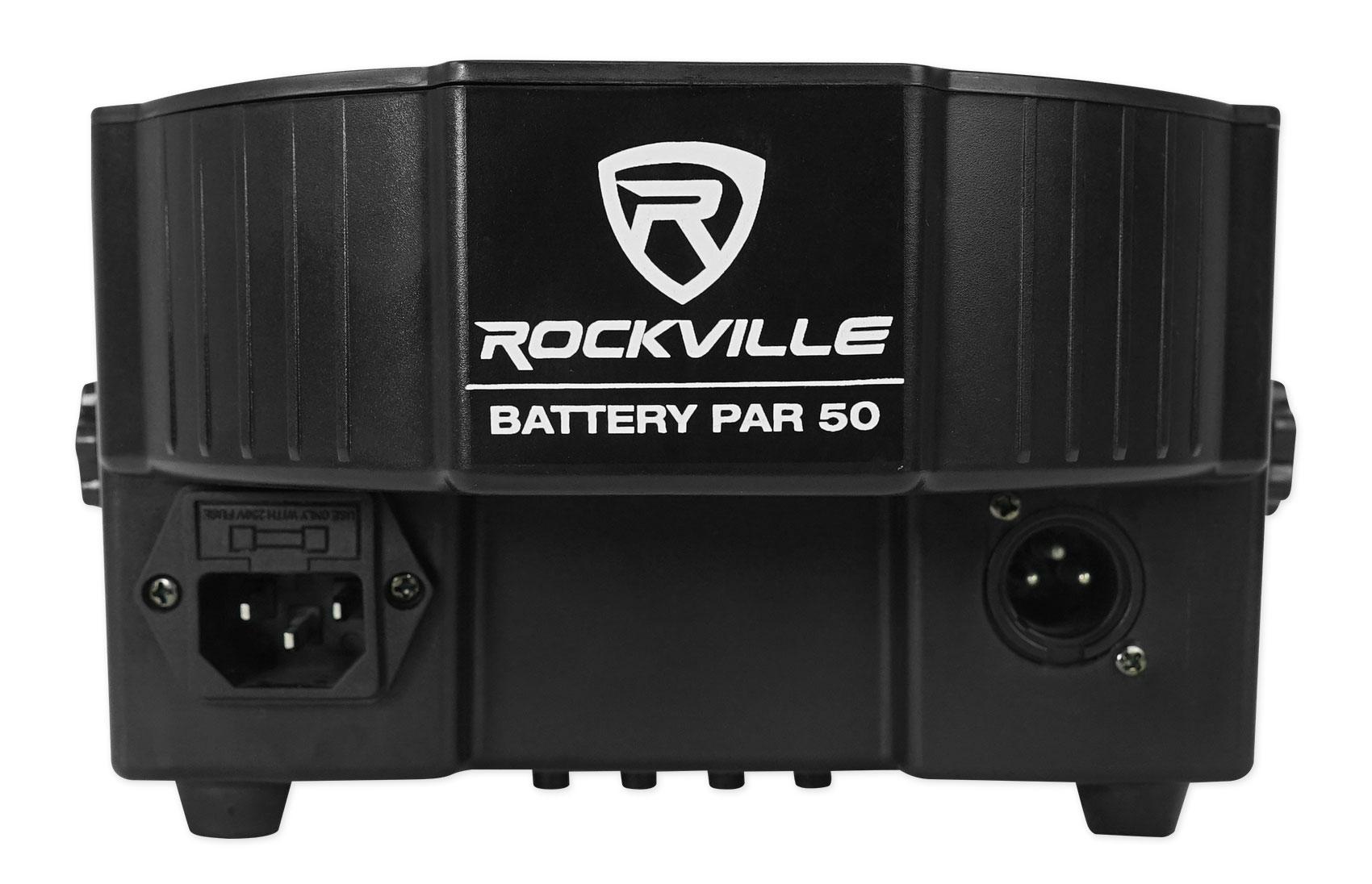 - Rockville BATTERY PAR 50 RGB Rechargeable Lithium Battery Powered Wash Light. Built in 4400mA lithium rechargeable battery allows you to use the lights without plugging them in. Battery lasts 15 hours with a single color and 10 hours with all colors. Charging time: 5 hours (max). Battery overcharge protection. Battery life LED indicator. Light source: (6x Red, 6x Green, 6xBlue). 18 LEDs / 1W each. DMX controls: 7 channels. Linkable in master/slave mode using 3-Pin DMX cable