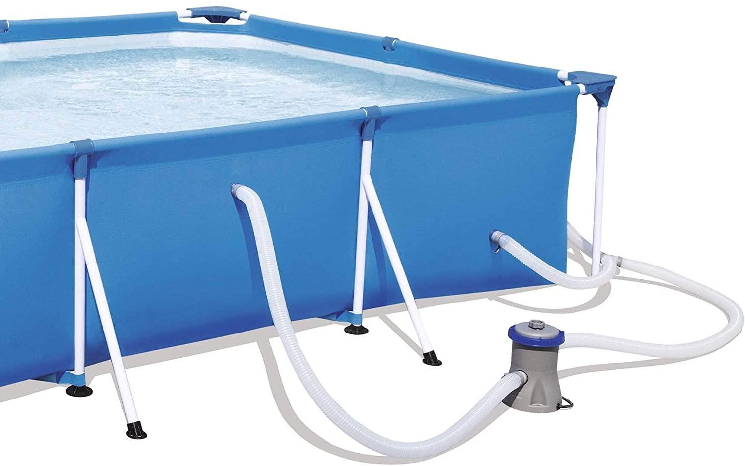 Bestway 56412E Steel Pro 9.8ft x 6.6ft x 26in Outdoor Rectangular Frame Above Ground Swimming Pool Set with 330 GPH Filter Pump and Repair Patch, Blue