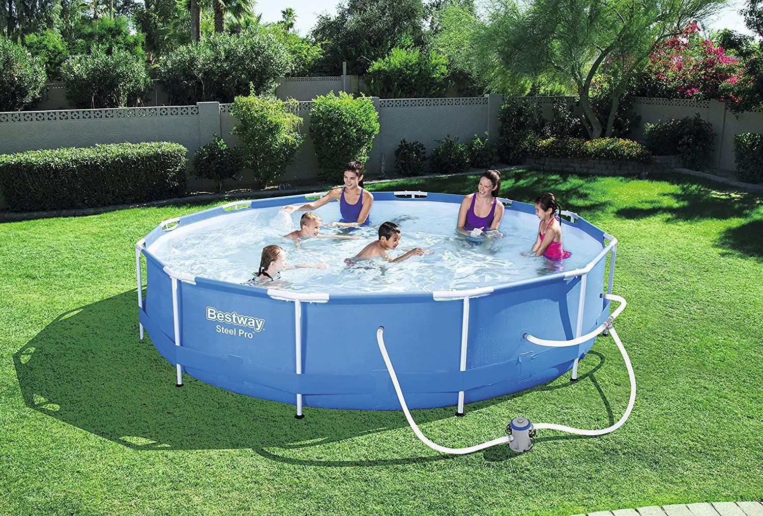 • ENDLESS SUMMER FUN: Kids and adults of all ages can enjoy swimming and splashing in Bestway’s Steel Pro Above Ground Pool. It’s the affordable alternative to a more complicated steel-walled pool, yet it provides durability and stability greater than inflatable pool options.