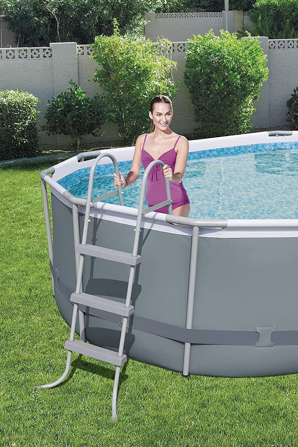 • ENDLESS SUMMER FUN: Kids and adults of all ages can enjoy swimming and splashing in Bestway’s Power Steel Above Ground Pool. It’s the affordable alternative to a more complicated steel-walled pool, yet it provides durability and stability greater than inflatable pool options.