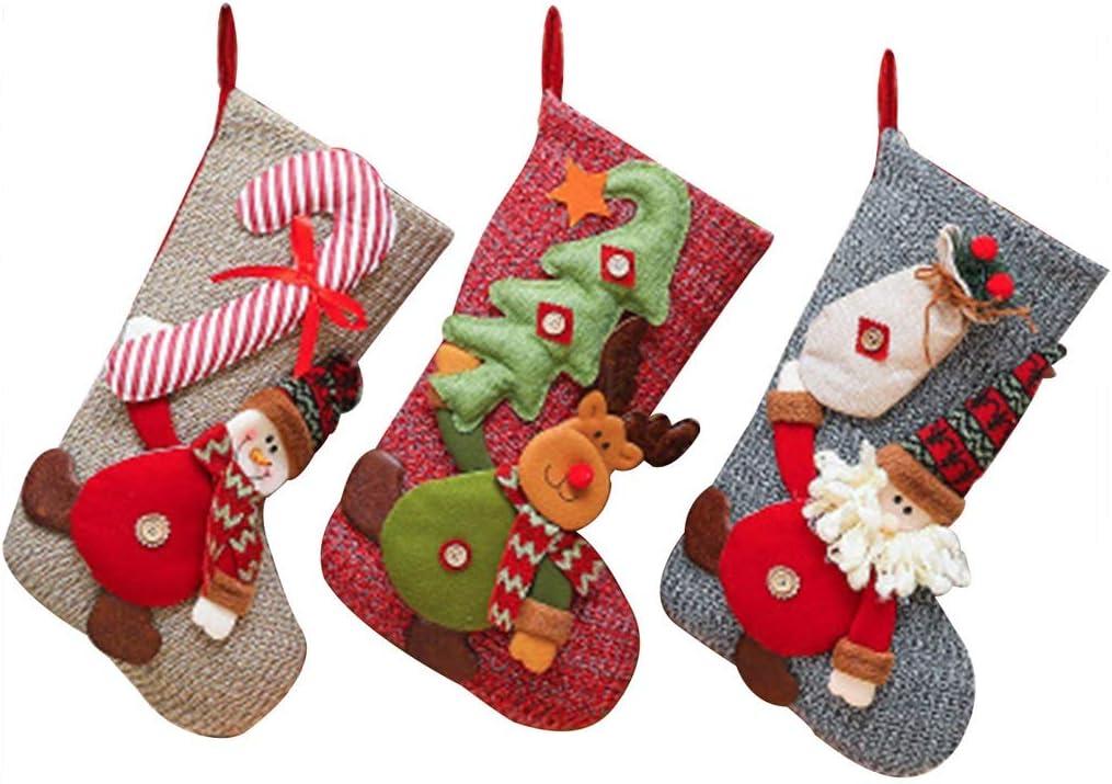 ZMDZA 3PS Christmas Stockings Hanging Ornament Candy Gifts Bag Hanging Plush Xmas Tree Design Socks Fireplace Decorations Gift Holders
