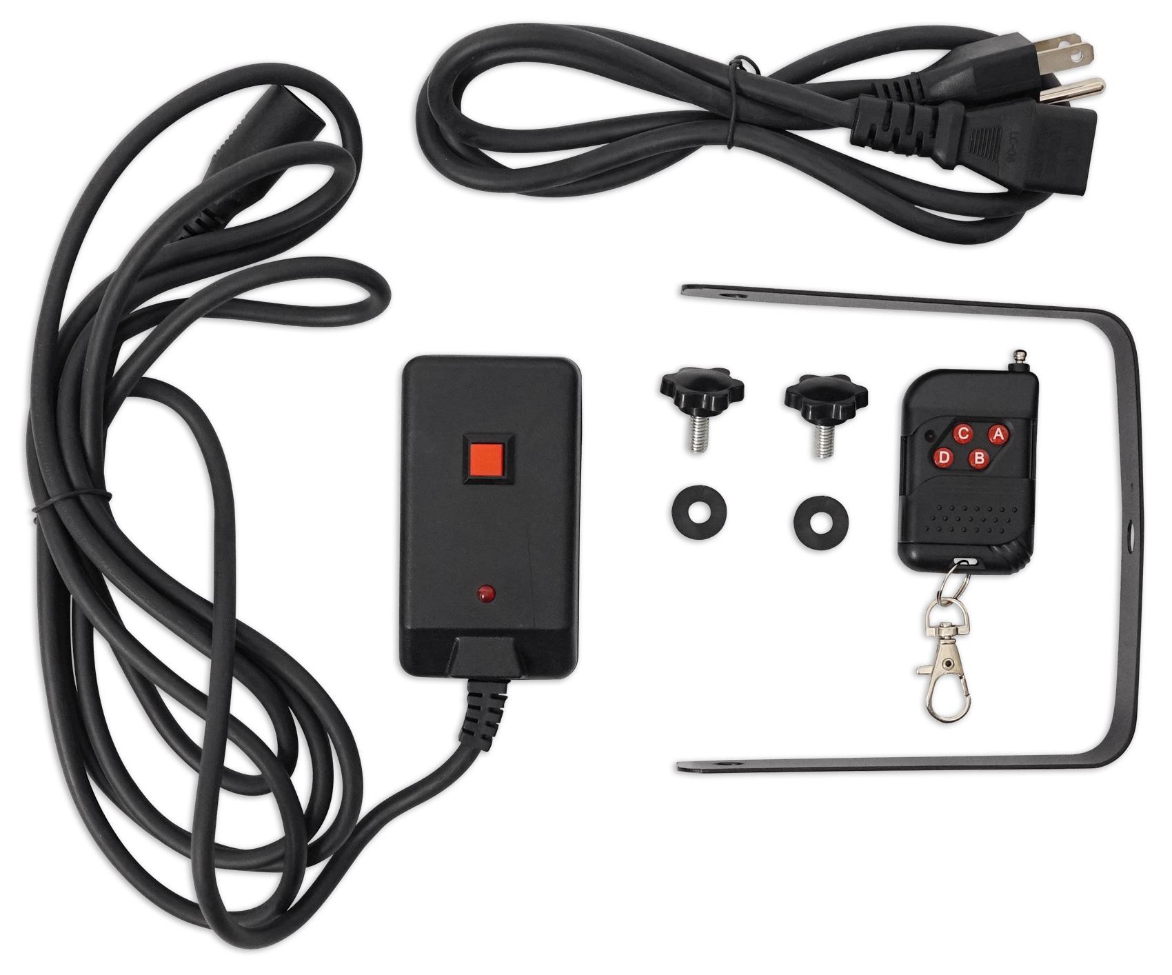 - Bracket Mounting Hole: M12. Optional Controllers: IRC. Includes: 1 x R700 Top Quality Fog Machine. 1 x Wired Remote. 1 x Wireless Timer Remote. 1 x pint of Fluid. 1 x Warranty Card. 1 x User Manual. Features: Output: capacity 3,000cfm (cubic feet per minute. 3.5 minute start time (fastest on the market for a similar priced unit). Manual fog button. Wired remote included. Wireless timer remote included. Hit one button and 30 seconds of fog will come out