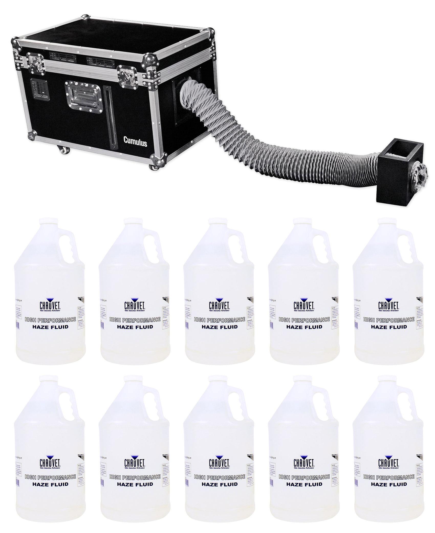 Package: Chauvet DJ CUMULUS Commercial Fog Machine Professional DMX Fogger w/ Road Case + (10) Brand New Chauvet DJ HFG High Performance Haze Juice Fluid Gallon
