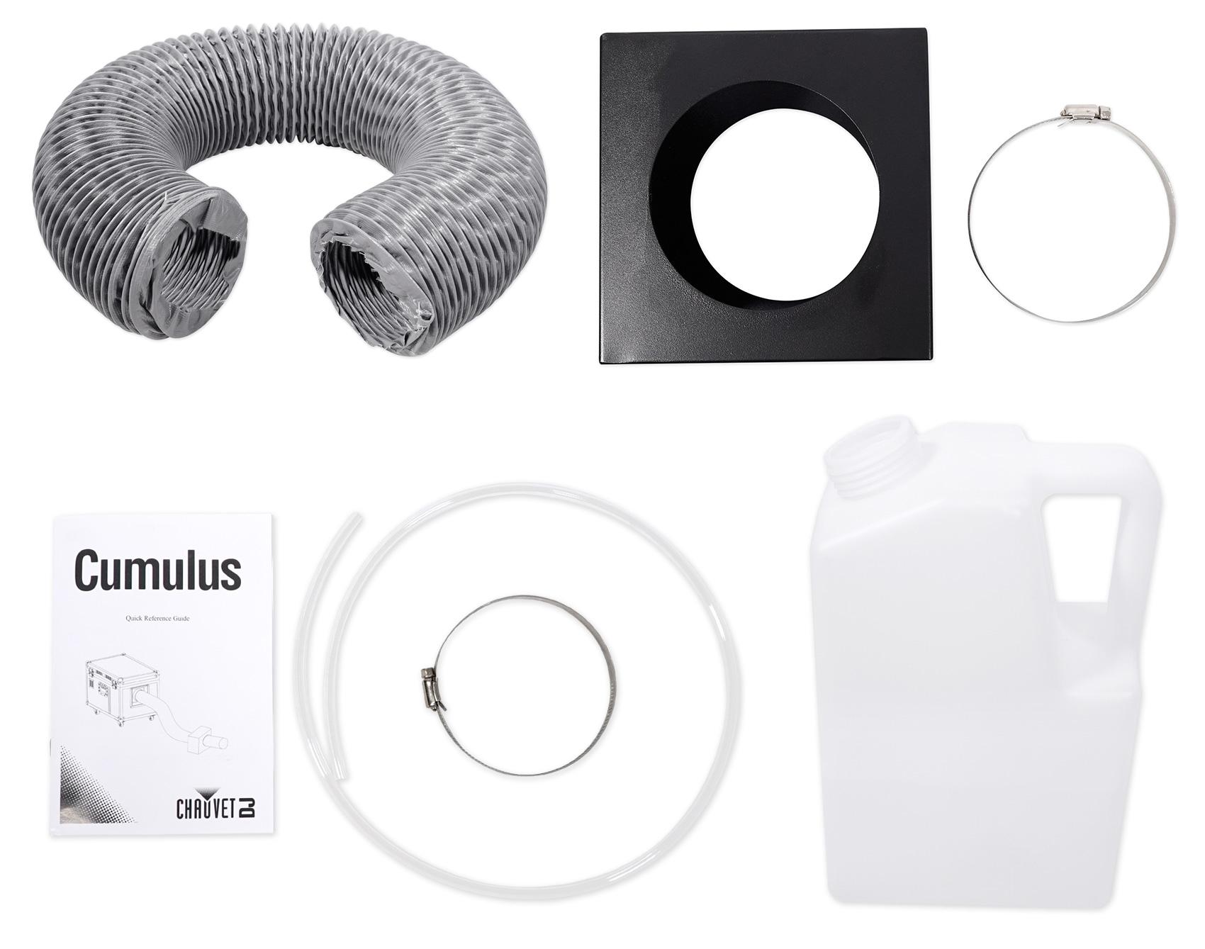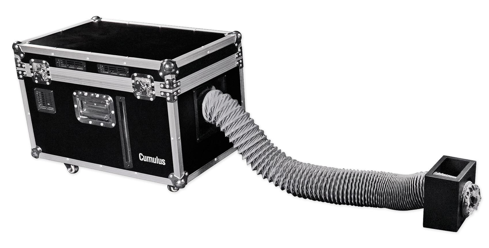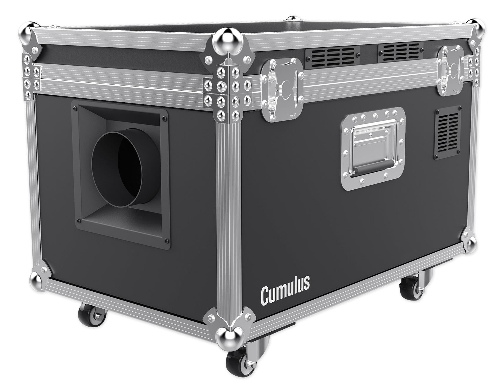 Cumulus is an event-ready, low-lying fog machine that creates thick clouds thathug the floor without the need for dry ice. The onboard ultrasonic agitatorconverts distilled water into a thin mist. The unit?s fast heat up time allowsfor quick operation and fog on demand. It?s rugged flight case makestransportation a breeze and locking casters prevent accidental roll-a-ways.Cumulus can be controlled with the on board digital display or DMX.