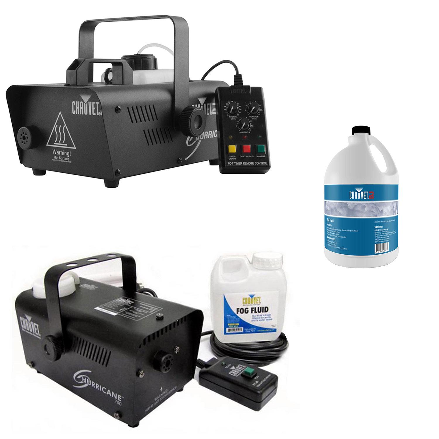 • Bundle includes the Chauvet DJ Hurricane 1200 Fog Machine w/ FC-T Wired Remote with the Chauvet DJ Hurricane 700 Fog Machine and Chauvet Fog Juice Fluid [3 Items]