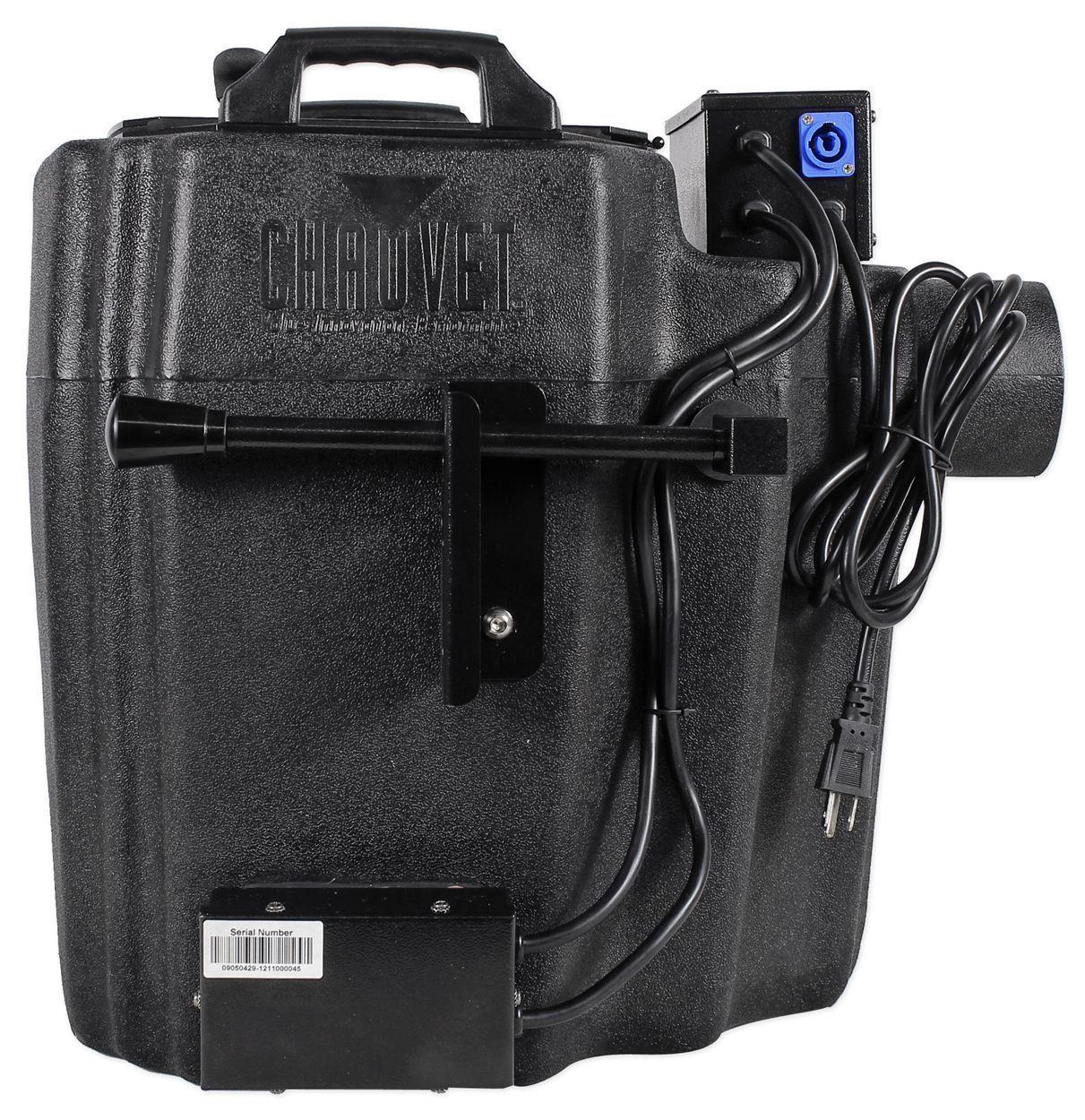 - Package Includes: (1) Chauvet DJ Nimbus Professional Plug/Play Dry Ice Fog Machine+Multi-Level Control. (1) Rockville MOTIONSTRIP Motorized Moving Head RGBW Color Strip Wash/Beam Light Bar. Professional dry ice machine creates thick, white fog that hugs the floor. Simple, plug-n-play operation quickly heats water to its optimal operating temperature. Second heating element heats the water in half the time. Adjustable, multi-level control handle manipulates the output and flow