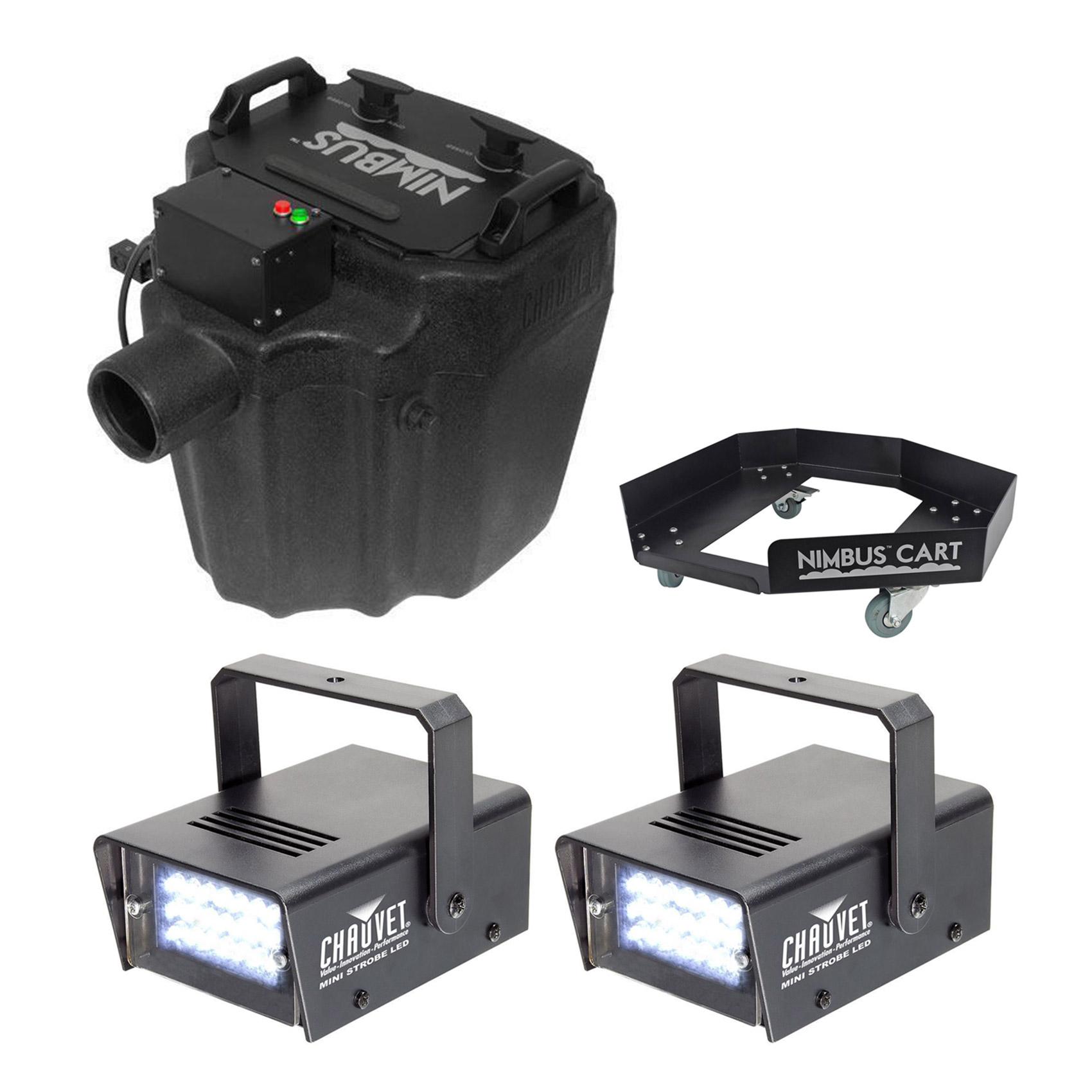 Chauvet NimbusTM Cart easily transports your NimbusTM dry ice machine to and fromthe car and around the dance floor. Four high-strength, ball bearing castersallow for smooth transportation, while two locking casters securely transportNimbus by locking it in place.
