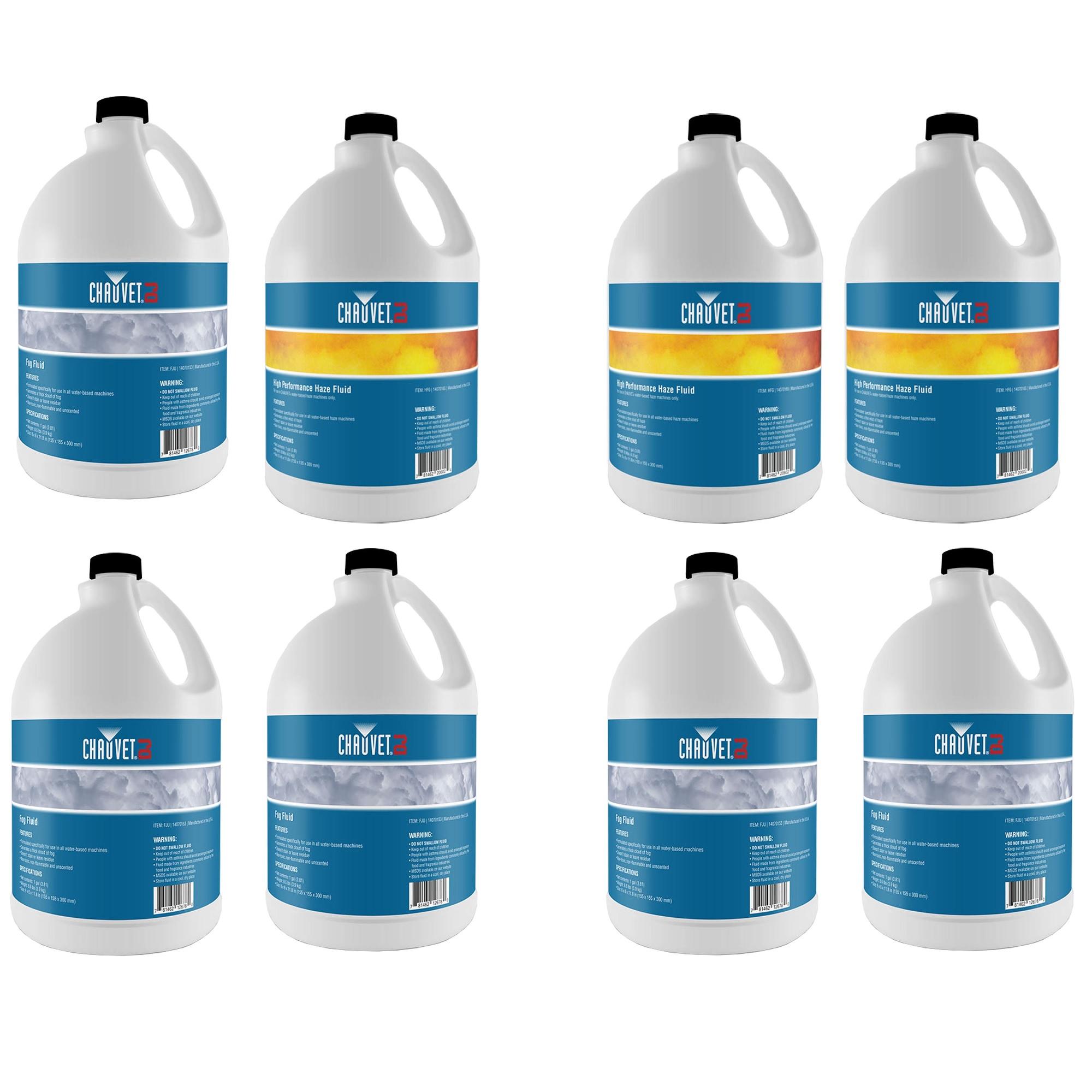 • Bundle includes a 4 pack of Chauvet DJ Hurricane Fog Machine Fluid, 1 Gallon & a 4 pack of Chauvet Fog Juice Fluid, 1 Gallon