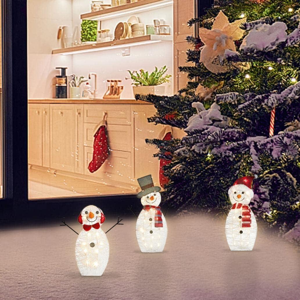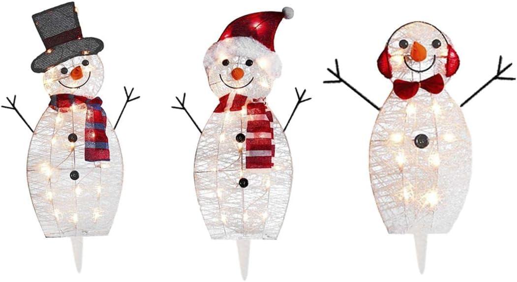 Christmas Decorations – 3 Pcs Led Light Light Up Snowman Christmas Decoration – Garden Luminescent Decoration – Acrylic 3X Snowman Insert 3X Lamp String (Requires Assembly)