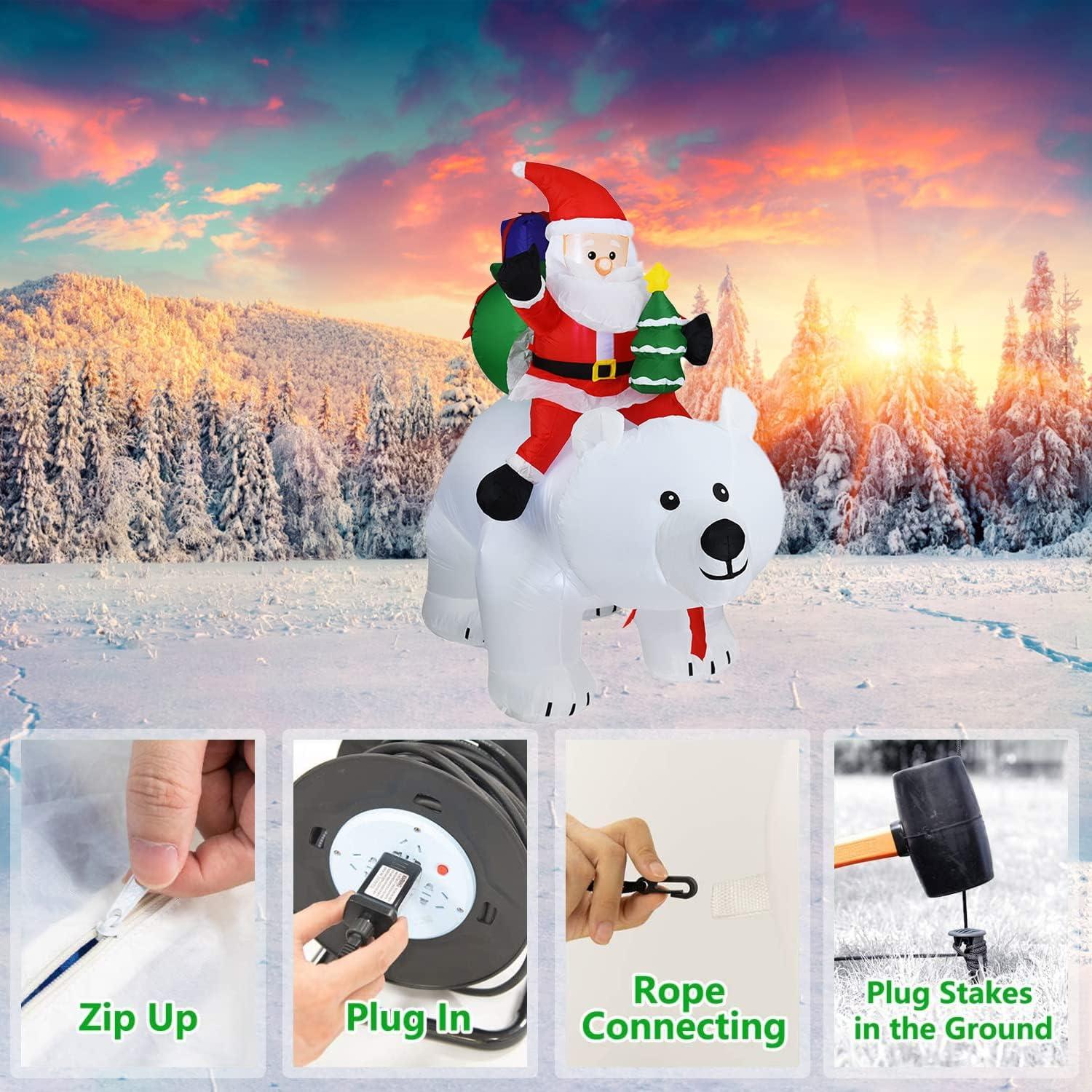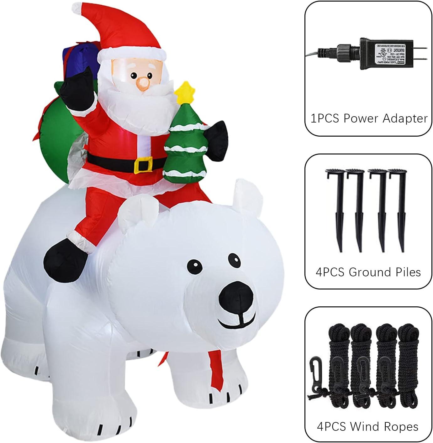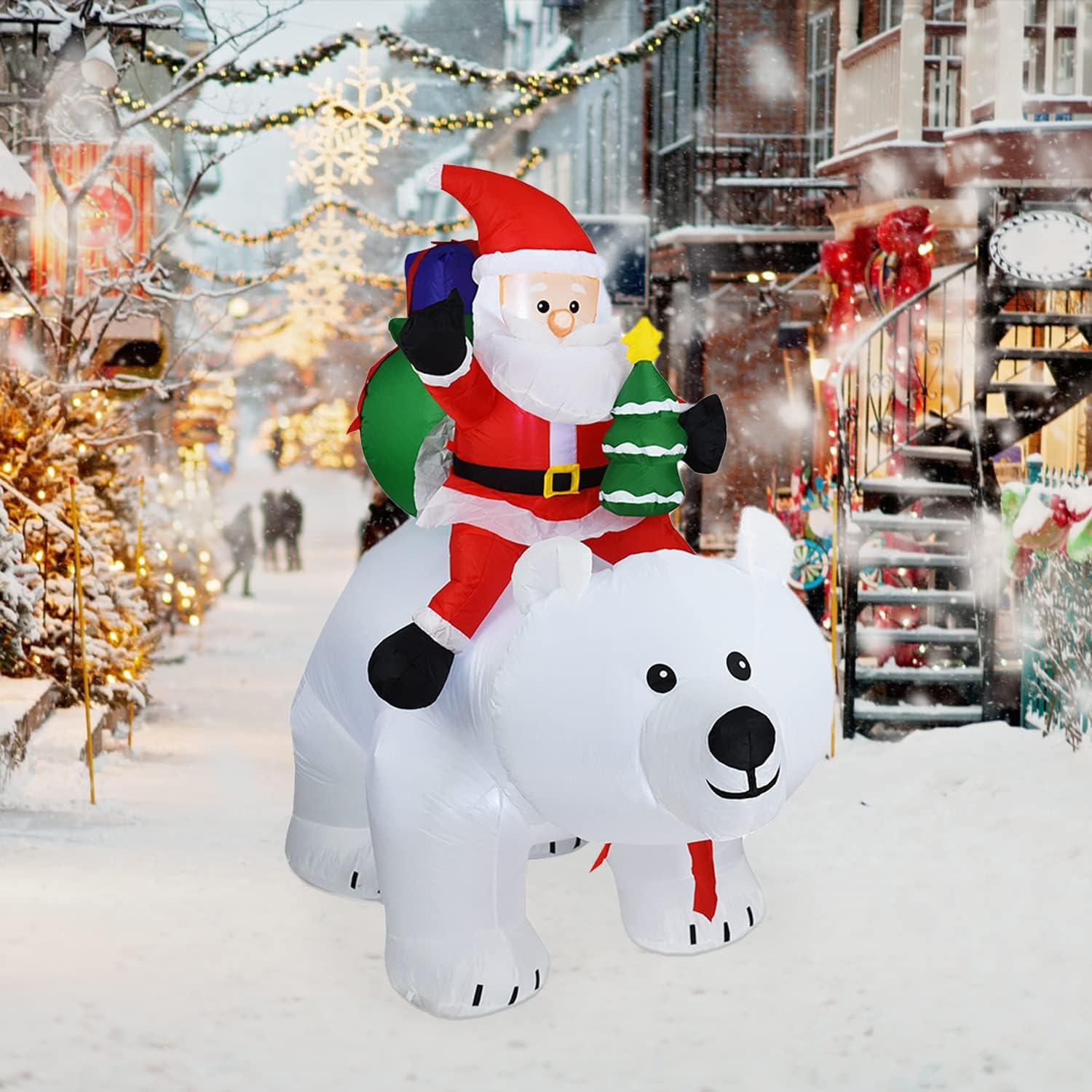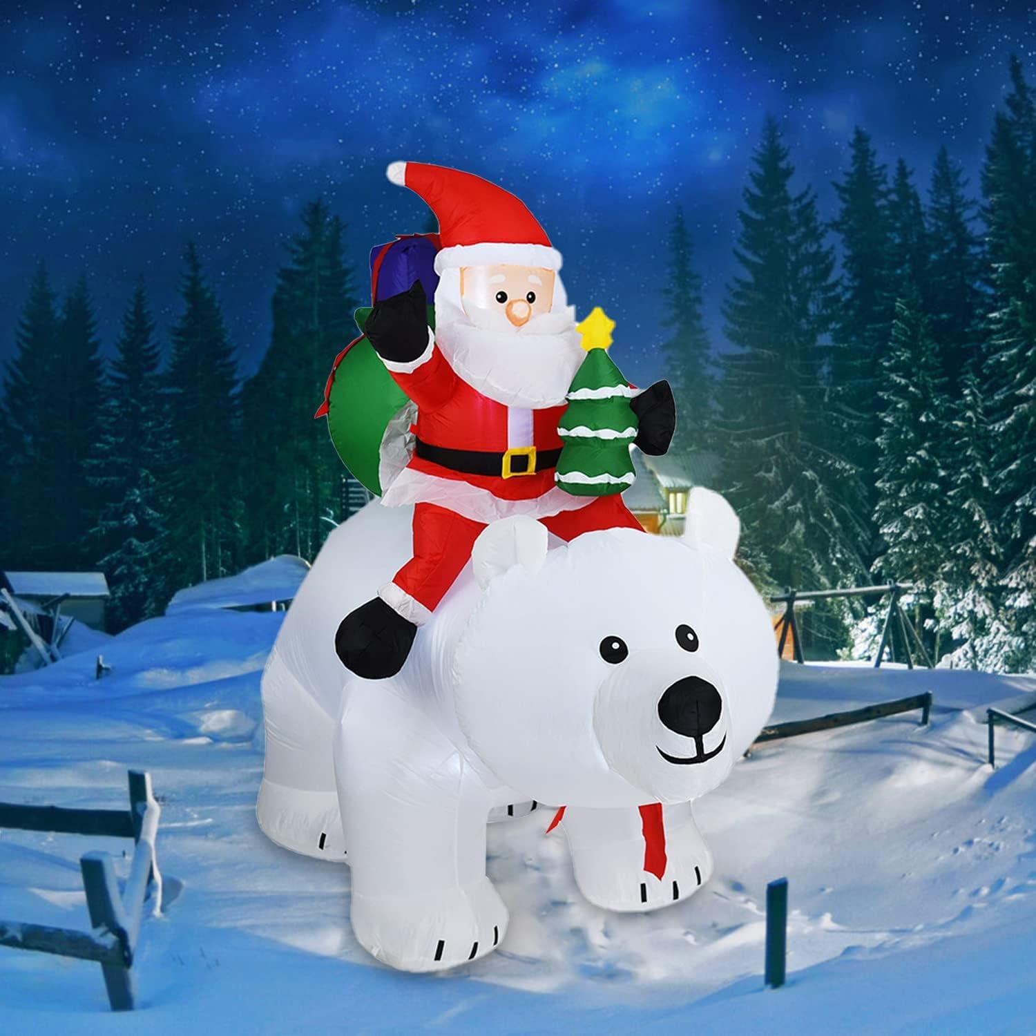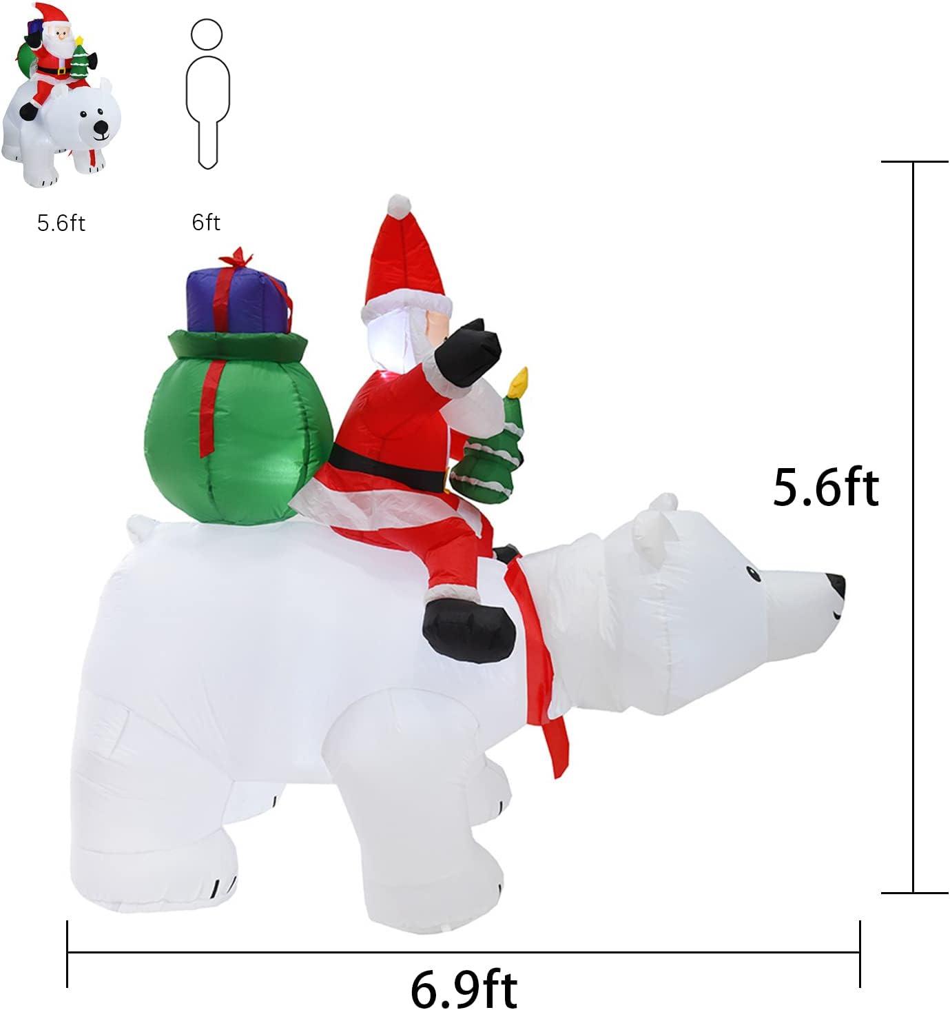 Christmas Decorations Inflatables Polar Bear – 6.9 FT Christmas Décor About Santa Claus Riding on a Polar Bear, Blow up Christmas Decorations Outdoor for Outside Yard Lawn Garden Indoor Home