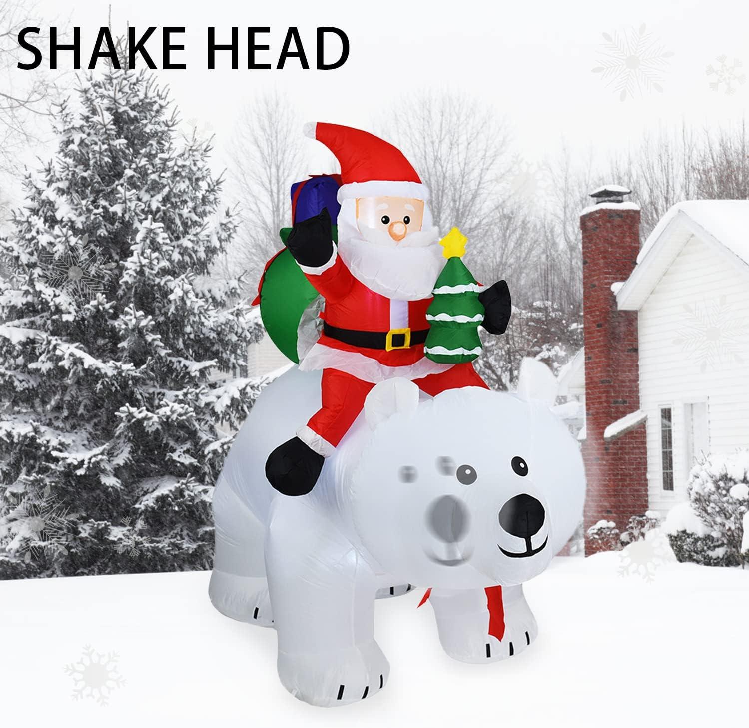 • 🐼Funny polar bear – Santa Claus is riding a polar bear with a Christmas tree in his hand and a big bag of gifts. The polar bear sways his cute head from side to side, as if to greet you. Treat your guests and family with this fun yard décor. It is one of the best Christmas gifts for your children or family.