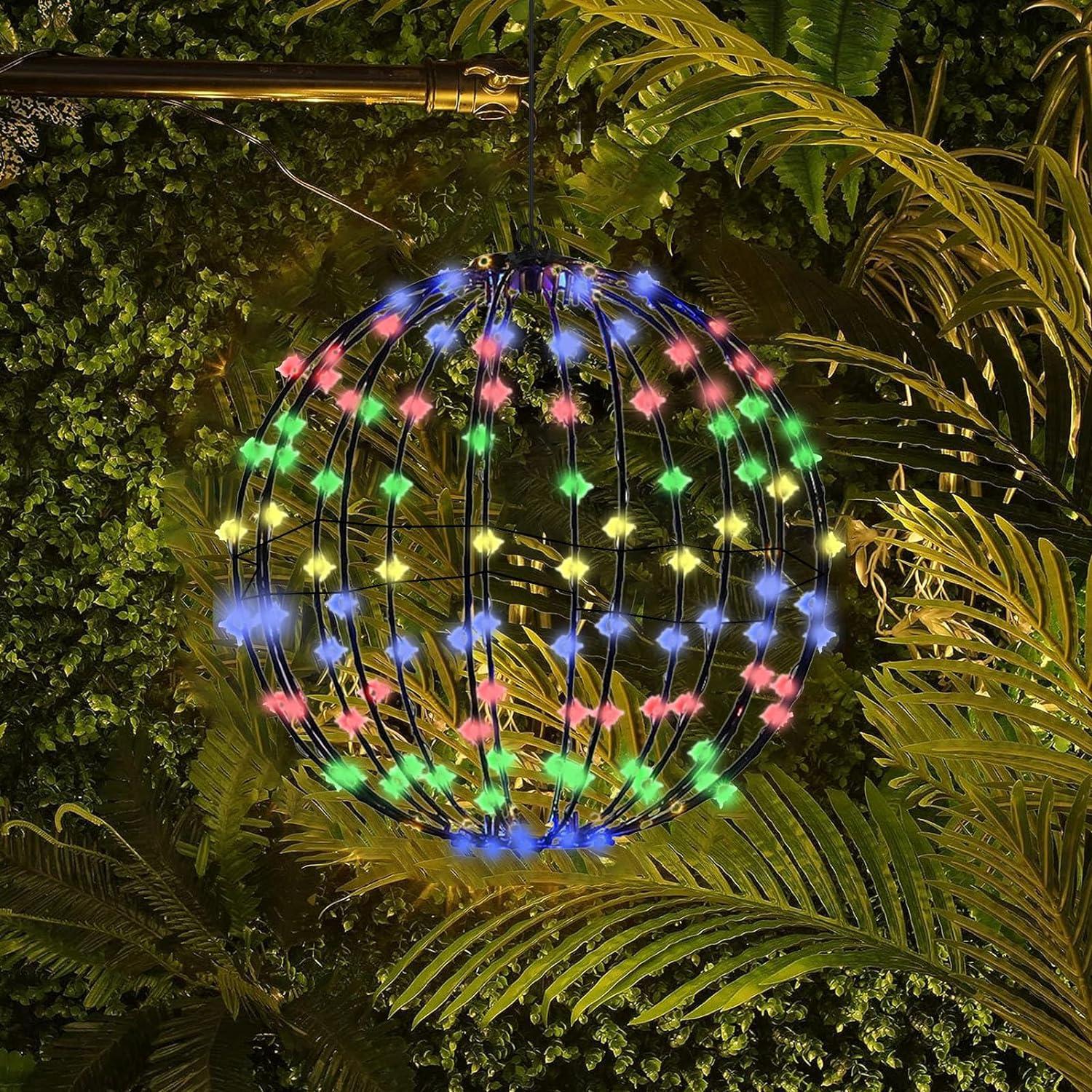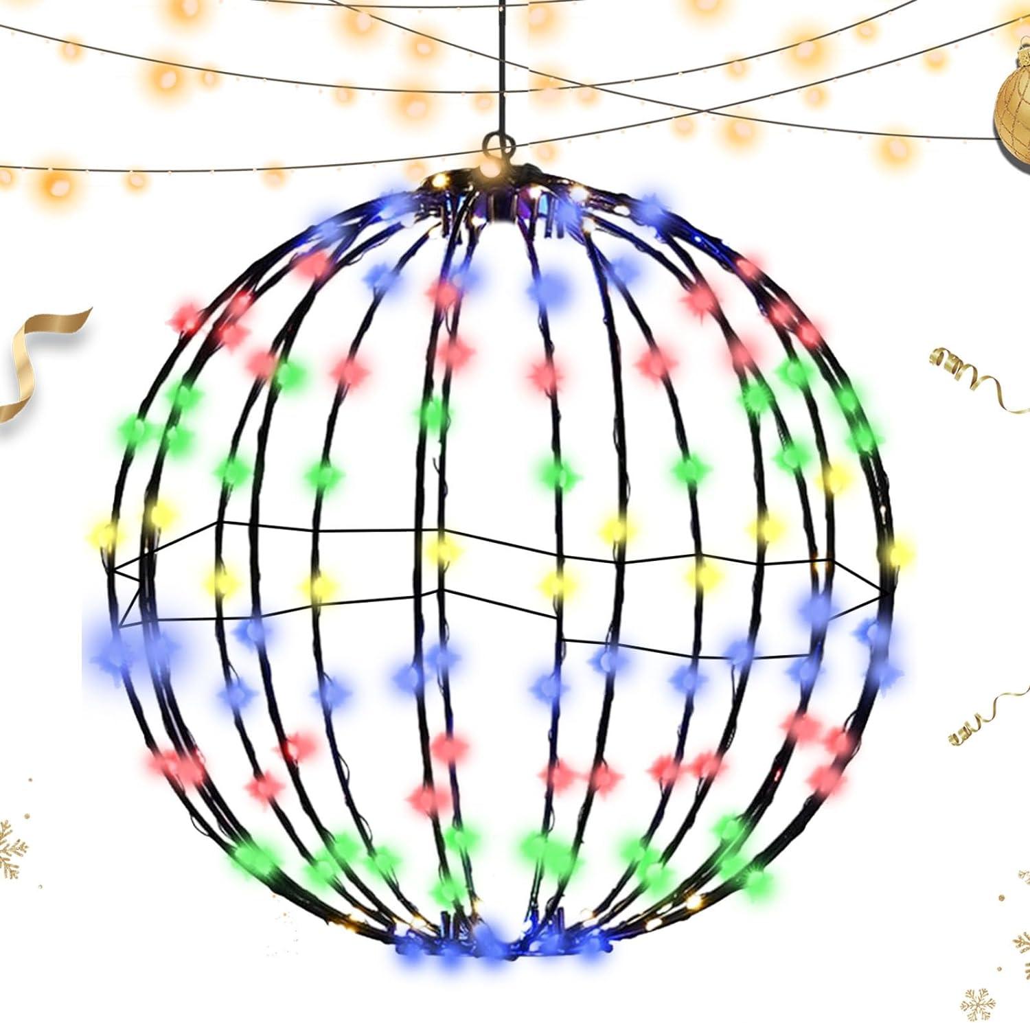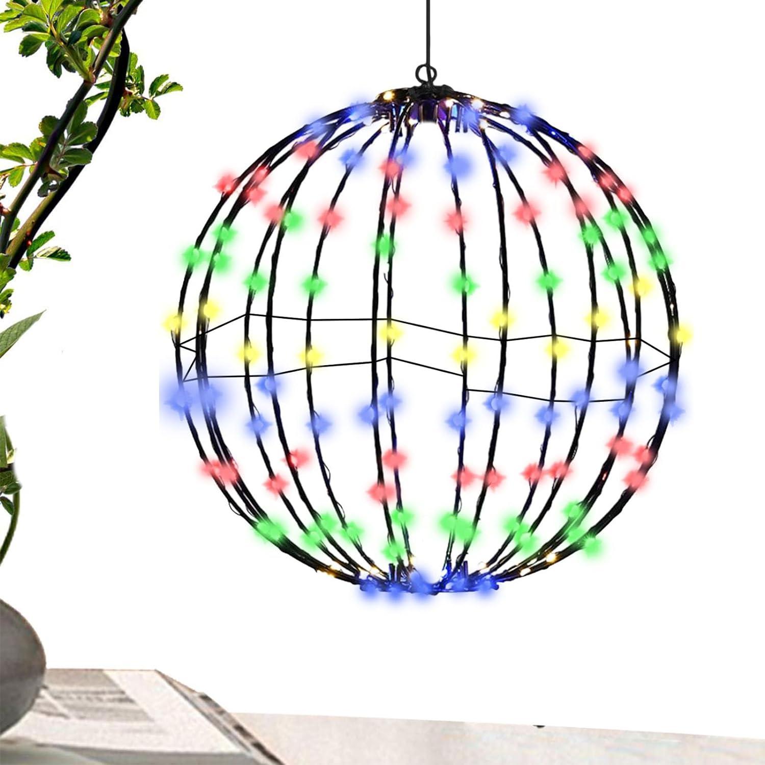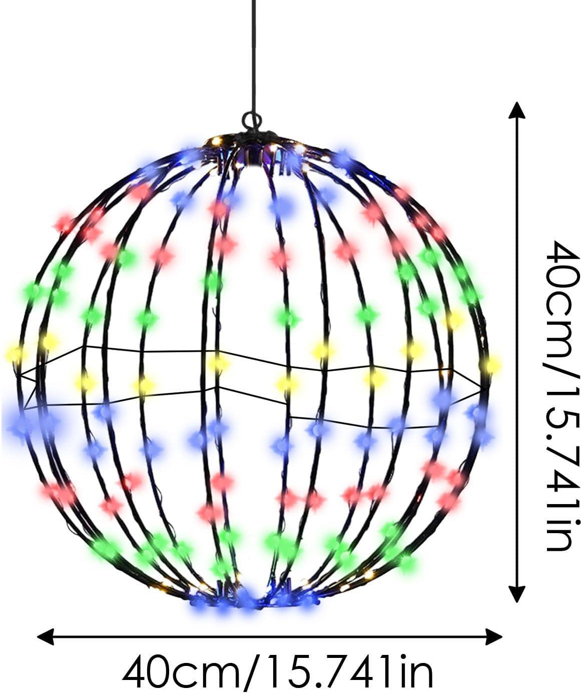 Christmas Light Balls, Foldable Metal Frame Christmas Hanging Tree Globe, Christmas Lighted Led Balls, Outdoor Christmas Led Sphere, Christmas Bright Light Ball for Outdoor Christmas Decorations