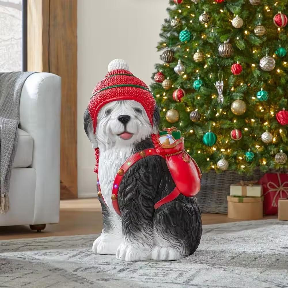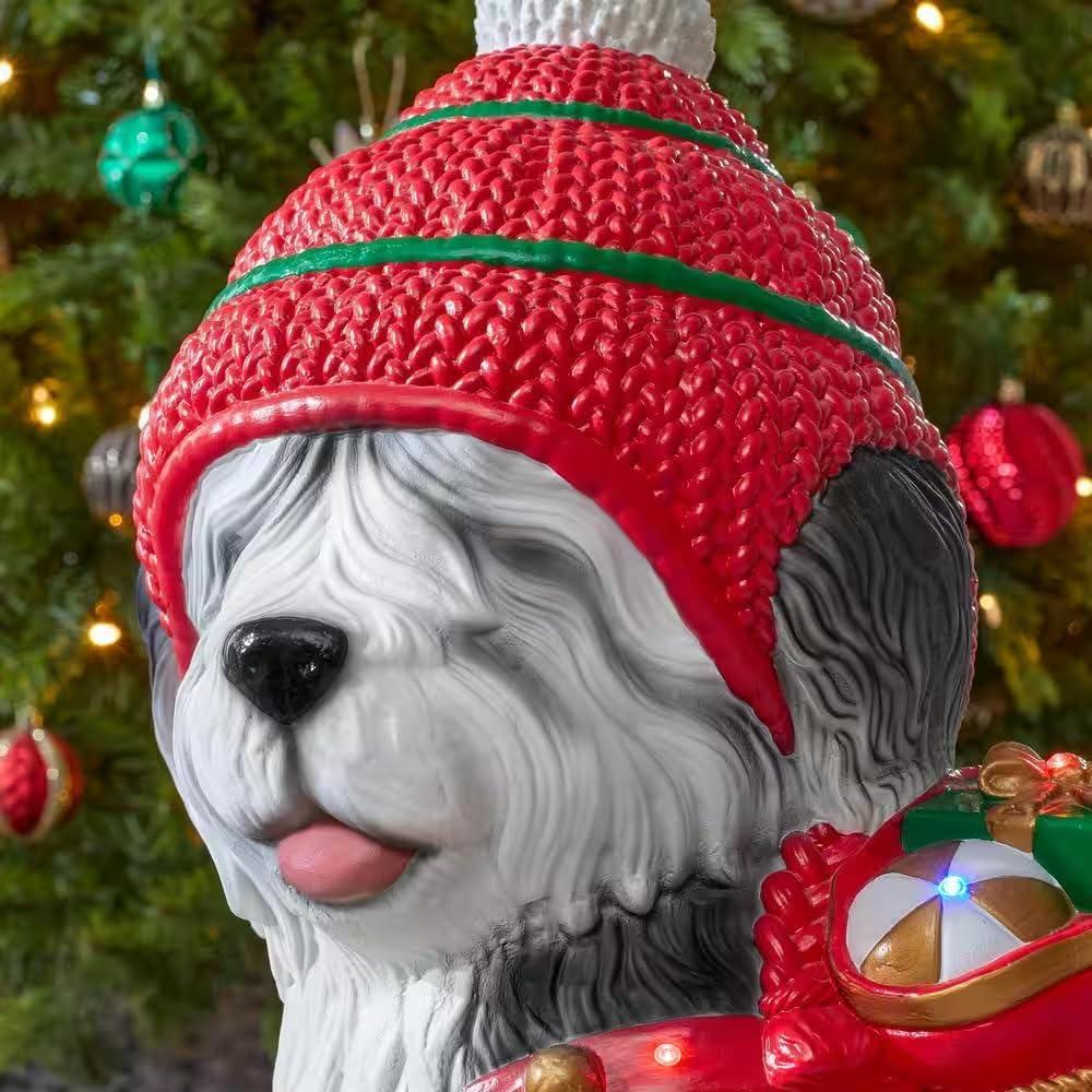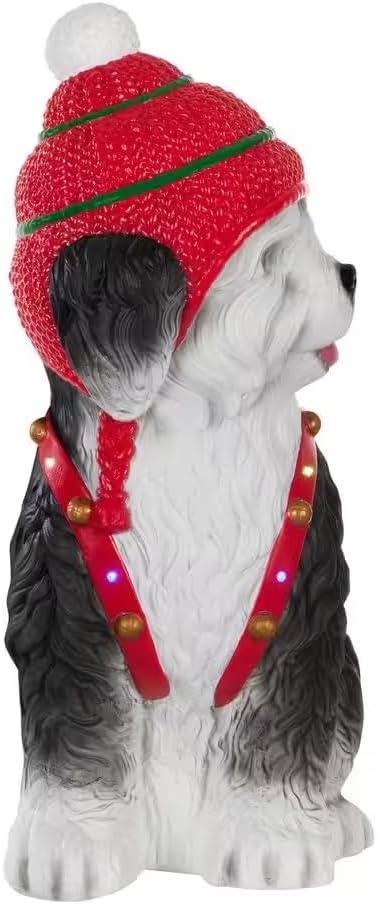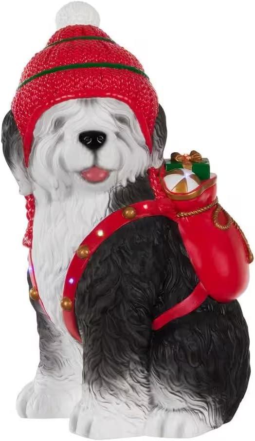 Christmas Lighted Blow Mold 30 Sheepdog with Gift Bag – 2.5 Foot Tall Pre-Lit LED Blow Molded Plastic Dog Sculpture for Indoor & Outdoor Xmas Home Door Yard Decor
