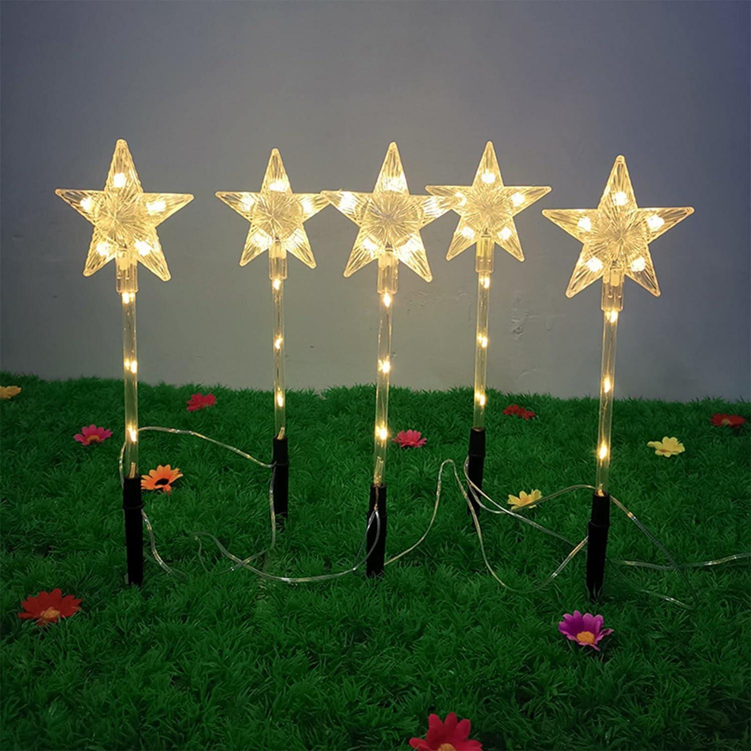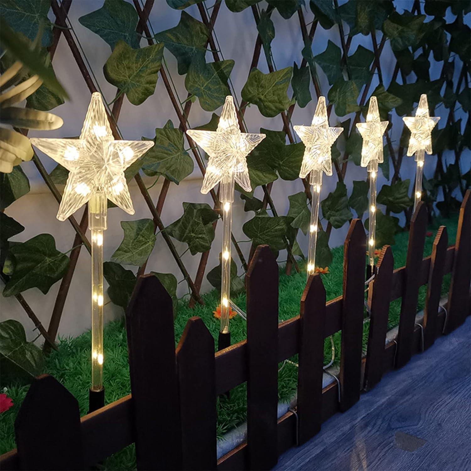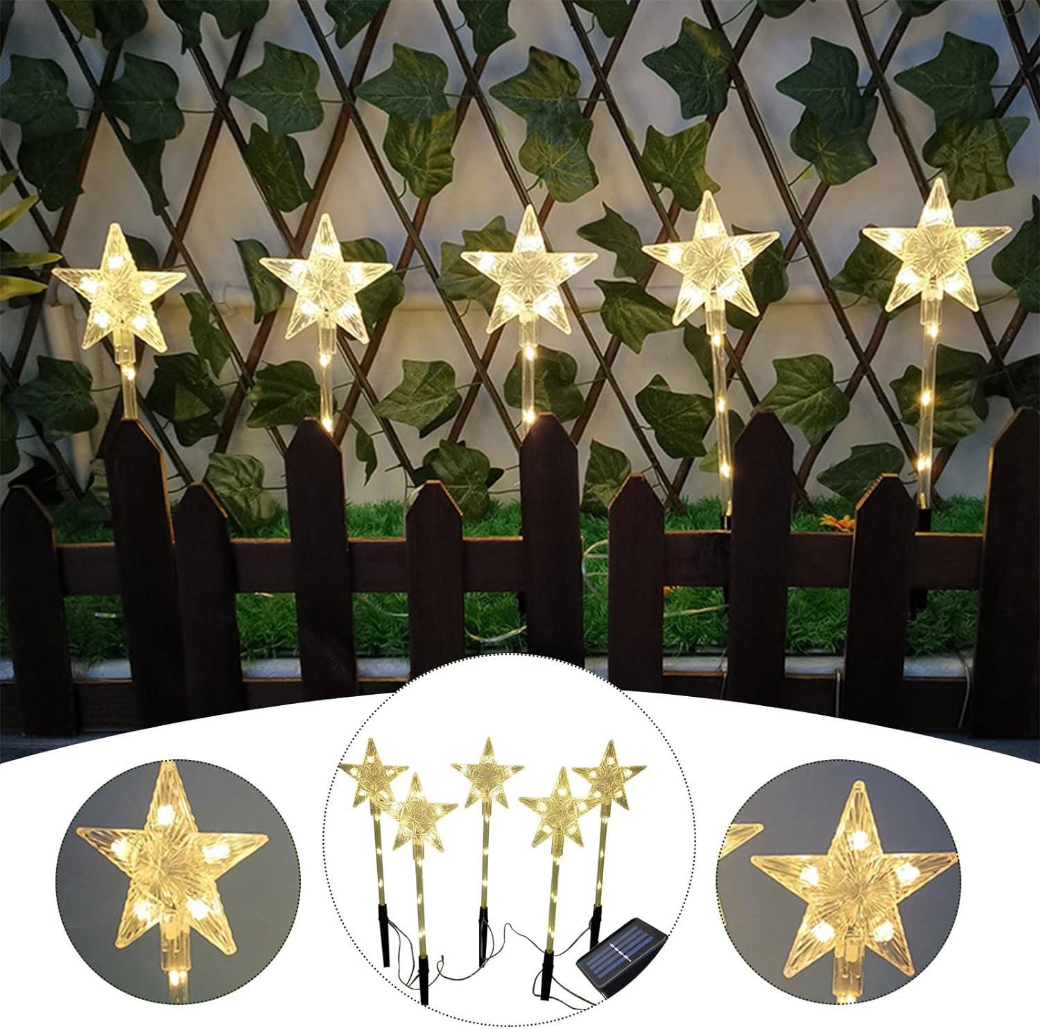 - 【Creative Waterproof Garden Lights】Solar small pentagram garden lights all use LED lamp beads to simulate decorative lights to illuminate flower beds, paths, lawns, driveways, campsites, Christmas parties, and create a Christmas romantic atmosphere.