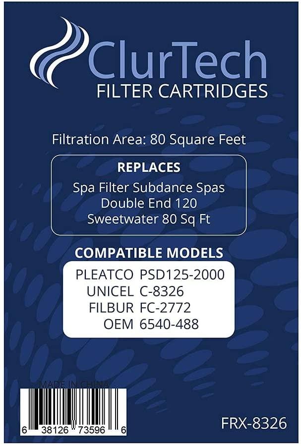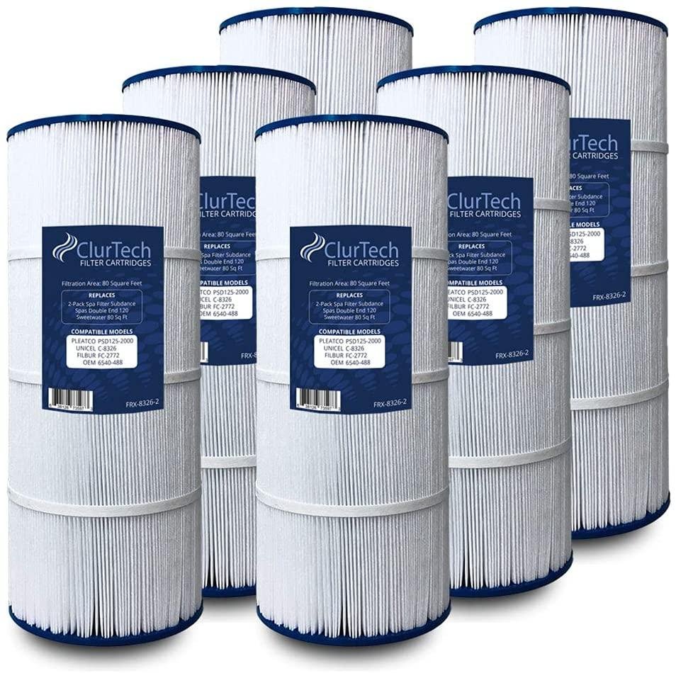 ClurTech FRX-8326-6 Replacement 6 Pack Subdance Double End 120 Sweetwater 80 Sq Ft Spa Filter Cartridge PSD125-2000 C-8326 FC-2772 6540-488, White