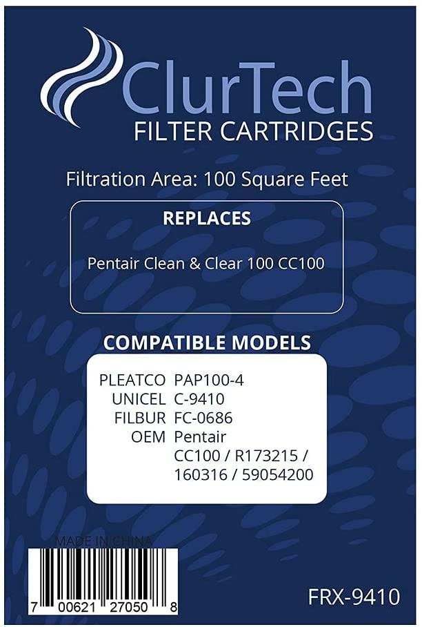 • Compatible Part Numbers – Pleatco: PAP100-4 | Unicel: C-9410 | Filbur: FC-0686 | OEMs: Pentair CC100 R173215 160316 59054200