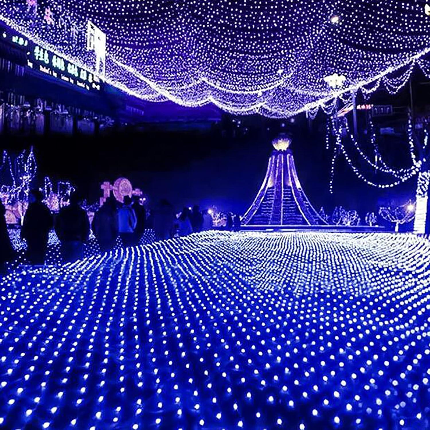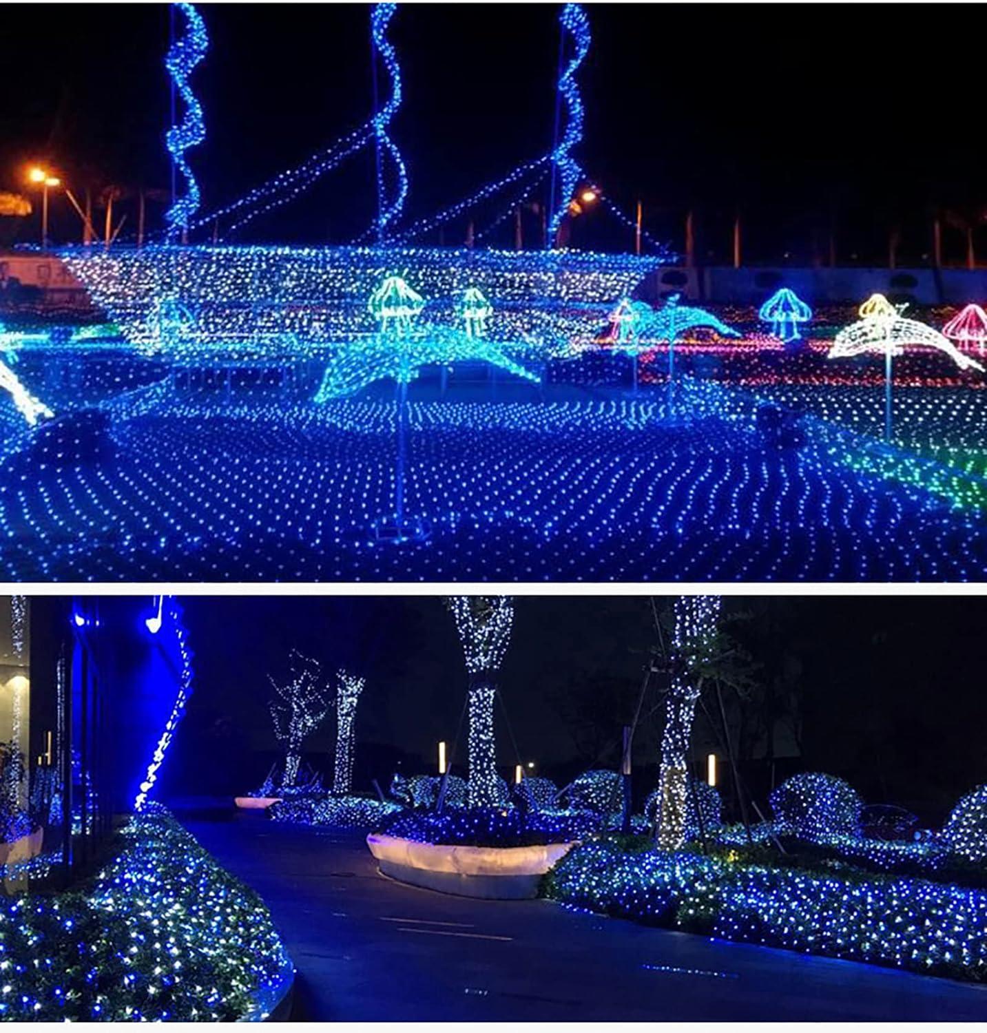 Decoration Fairy Lights for Xmas Trees New Year Party Wedding Bushes Garden,8 Modes Waterproof Mesh Lights Hanging String Lights Connectable Net Light,Christmas Net Lights Outdoor-Blue 10m x 8m 2600le