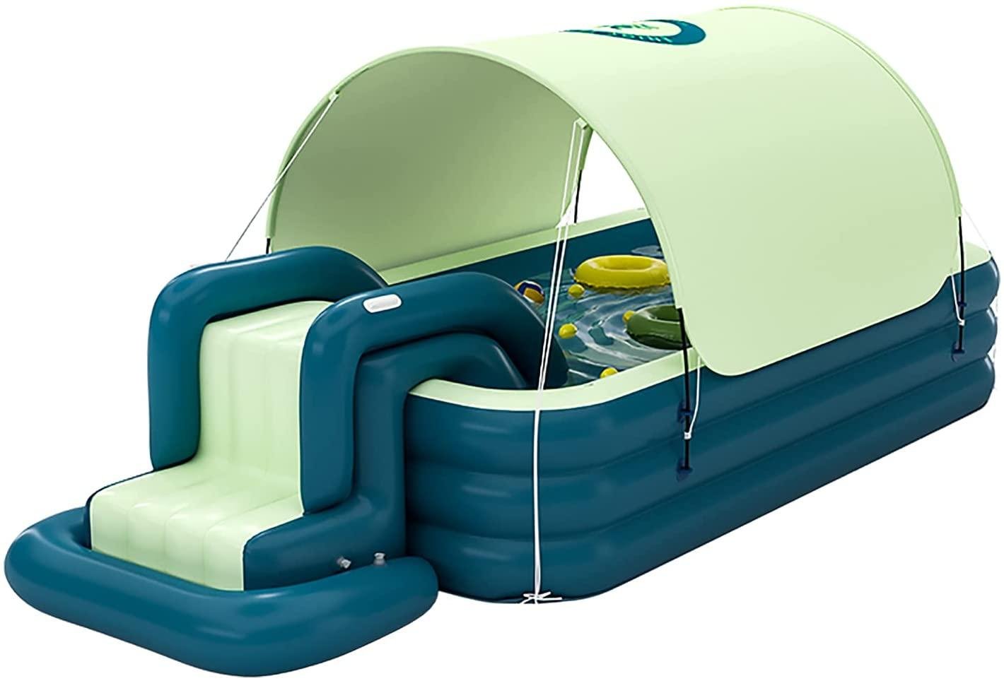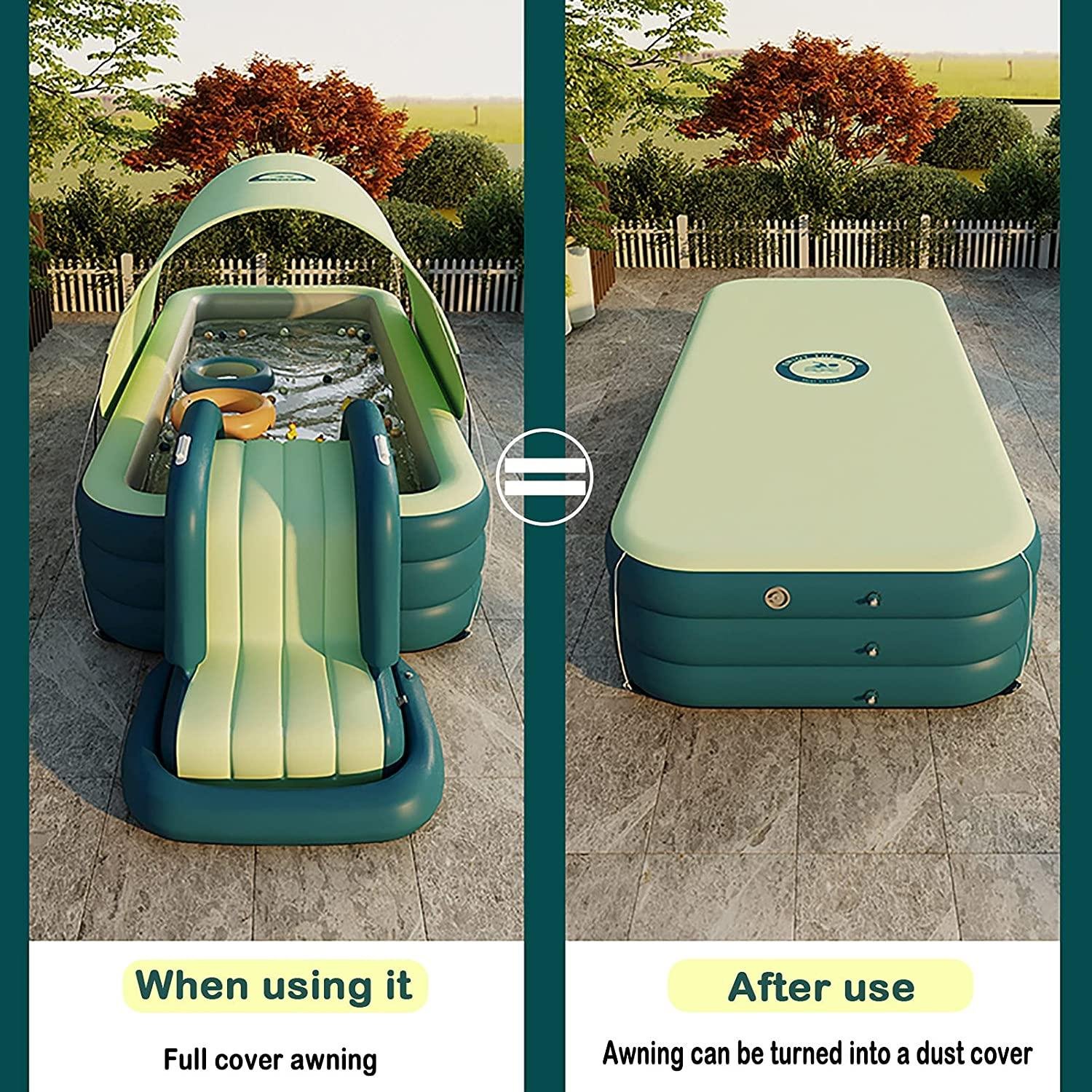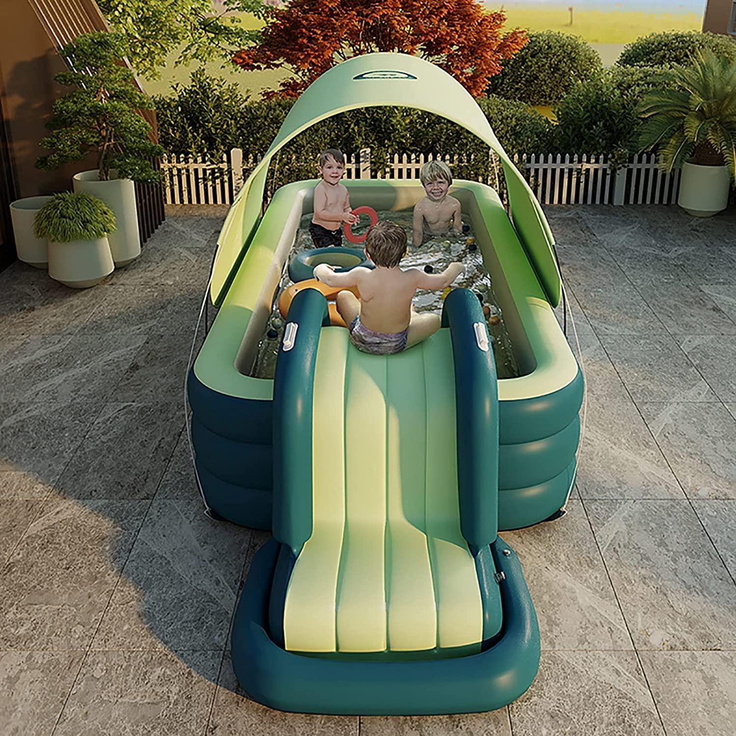 DFYR Family Inflatable Swimming Pool with Canopy and Slide, Blow Up Pool for Kids, Adults Automatic Inflatable Swimming Pool Adult for Ground, Backyard, Garden, Summer Water Party