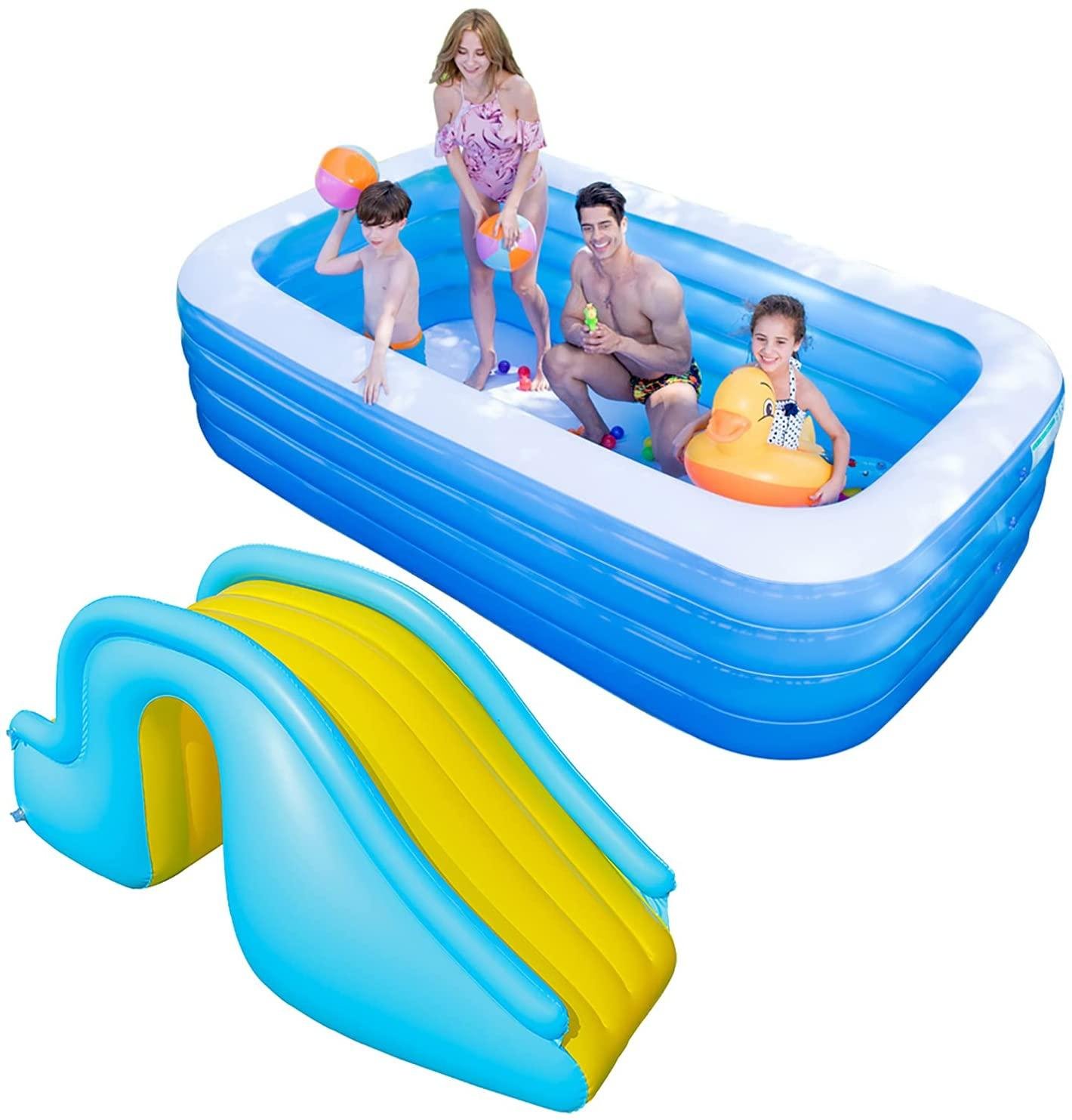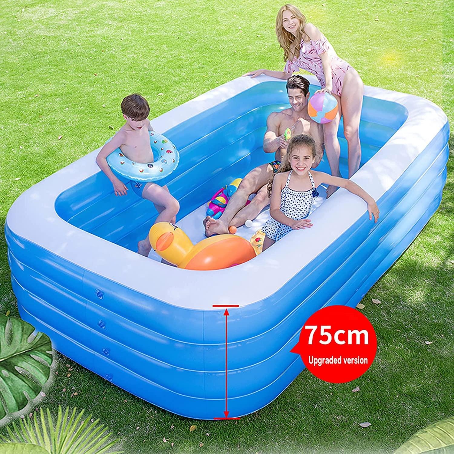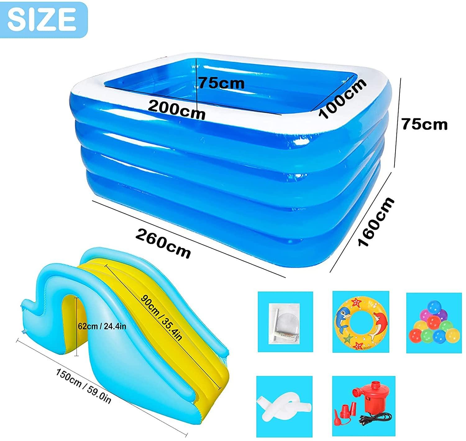 - ☑ Whole Family-Size Inflatable Swimming Pool: Inflatable kiddie pool helps you enjoy a great time with the whole family. You can enjoy your splashing pool party in the backyard! Also, it can be easily turned into an indoor ball pool for kiddies.