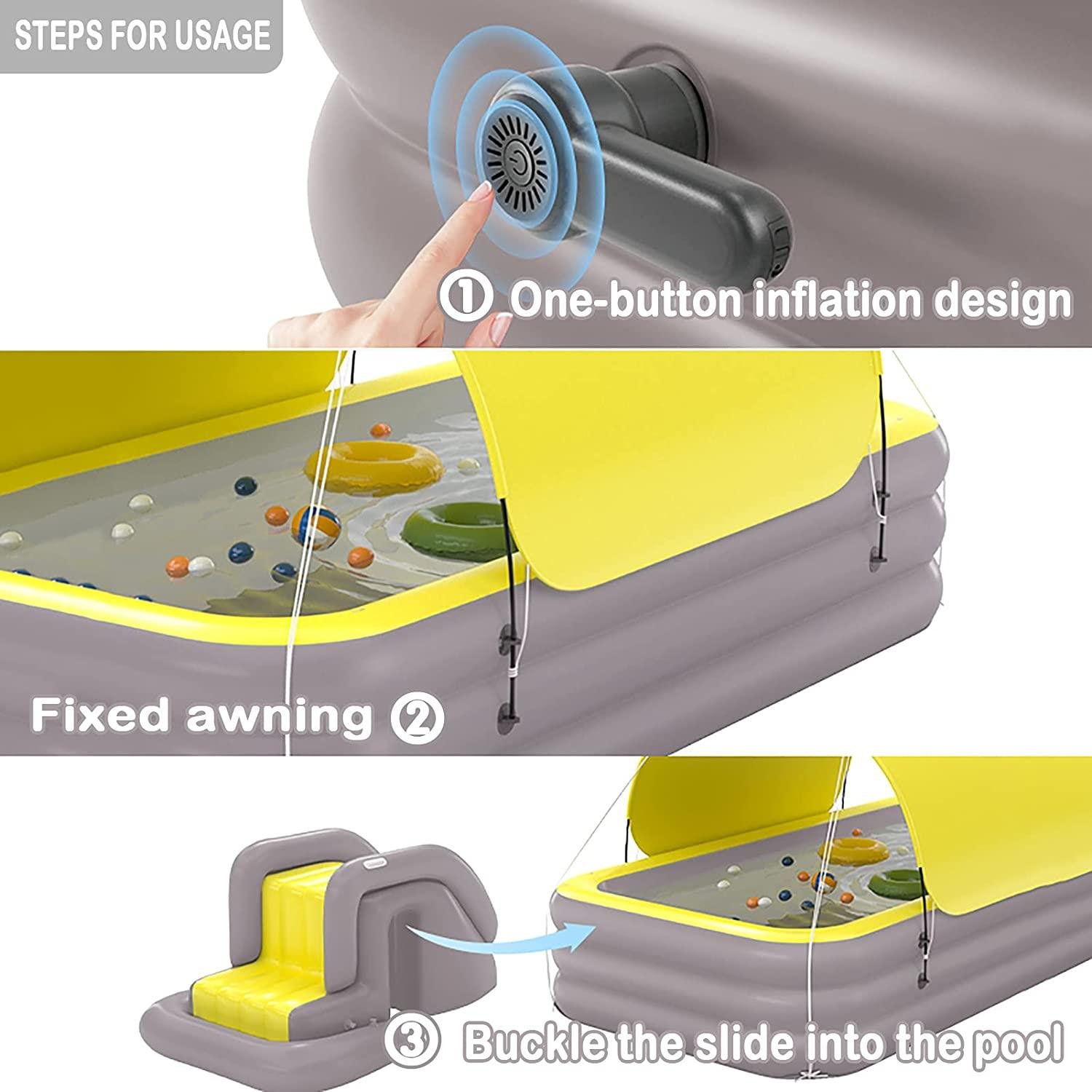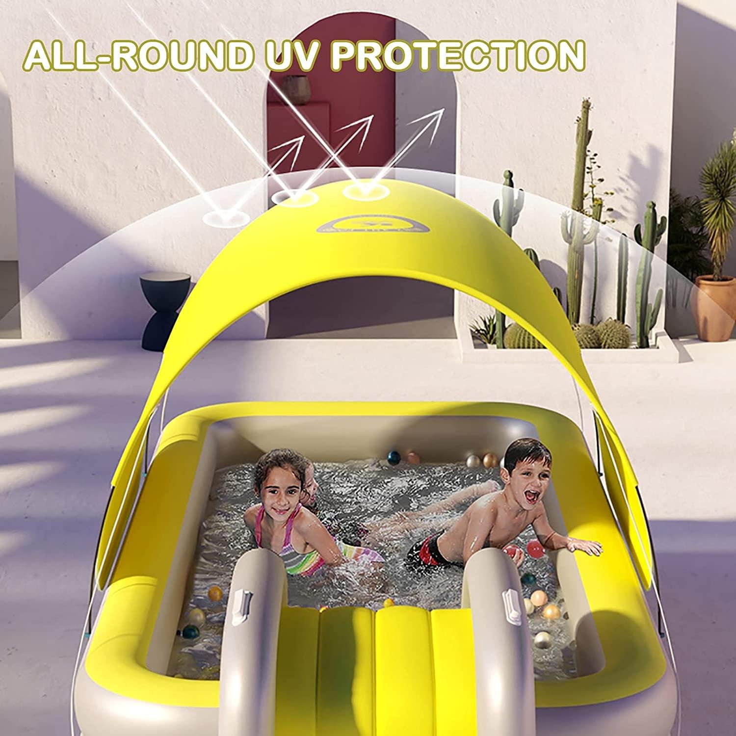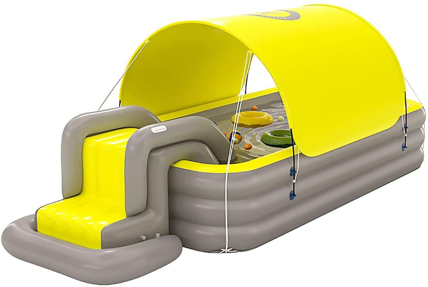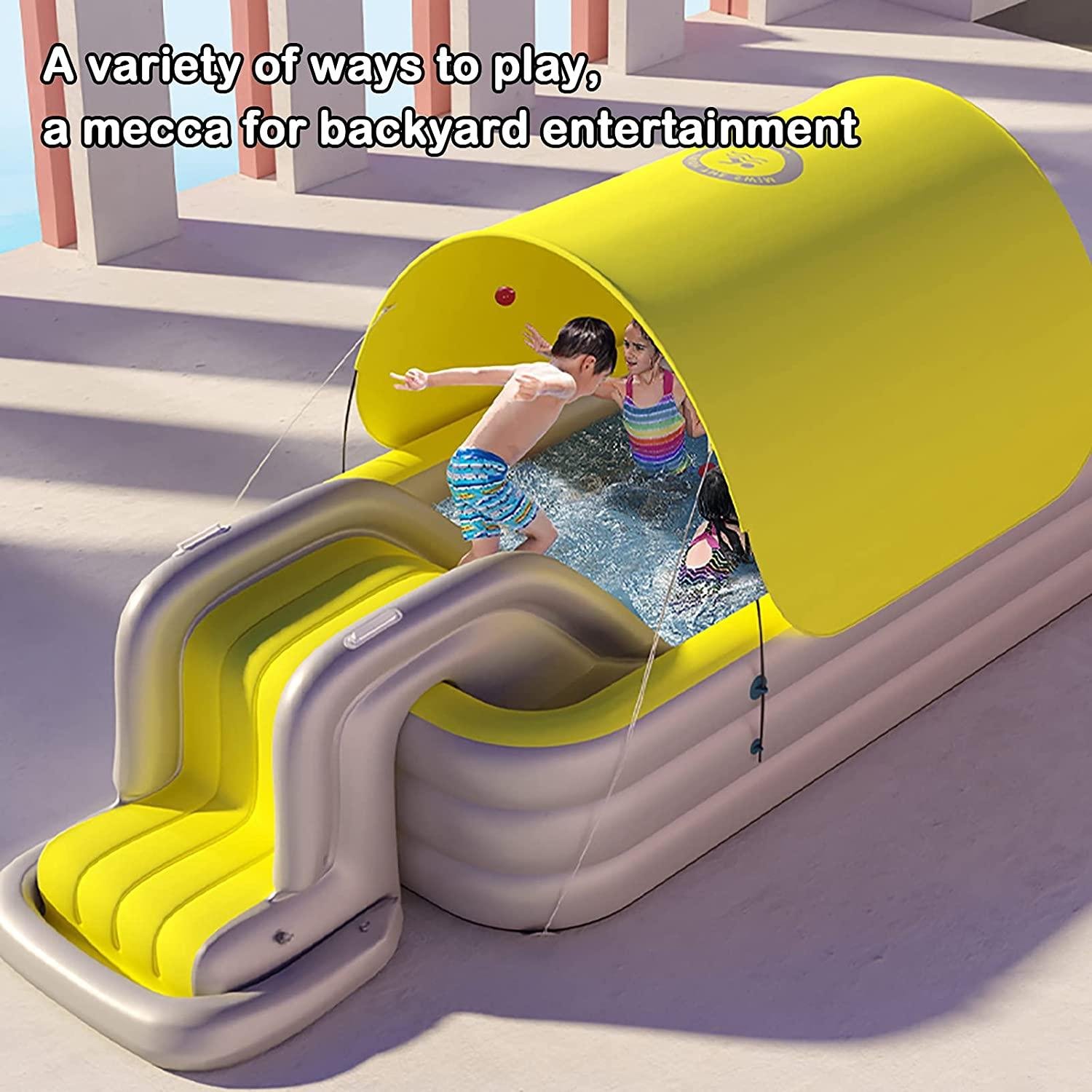 DFYR Inflatable Swimming Pool with Canopy, Kiddie Pool with Slide, Family Lounge Pool for Kids, Automatic Inflation Pool Garden, Backyard, Summer Water Party