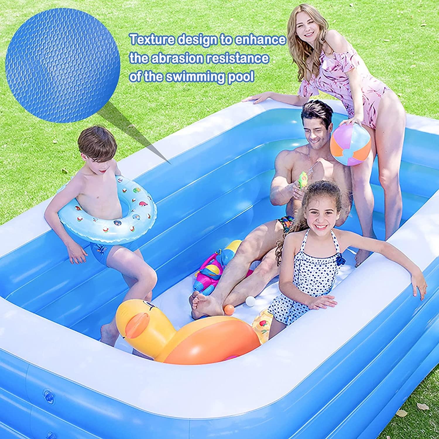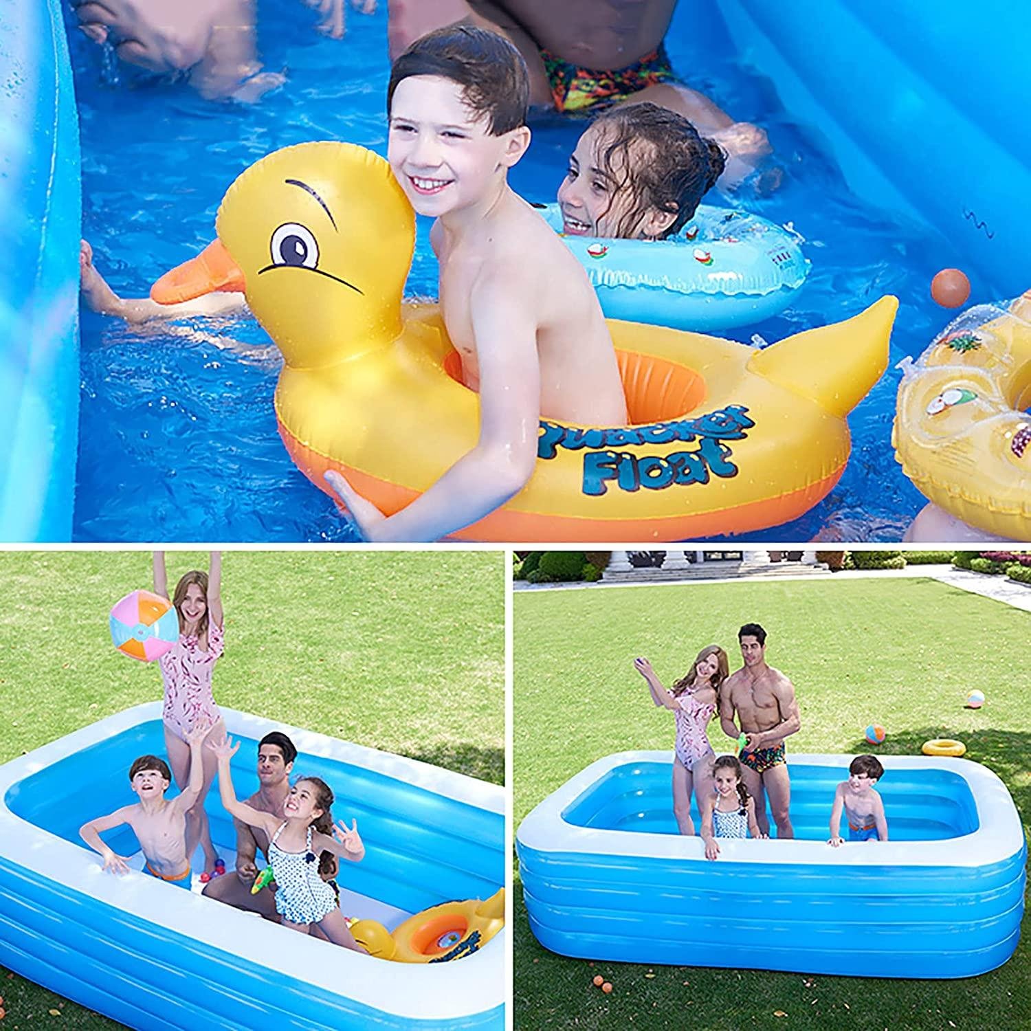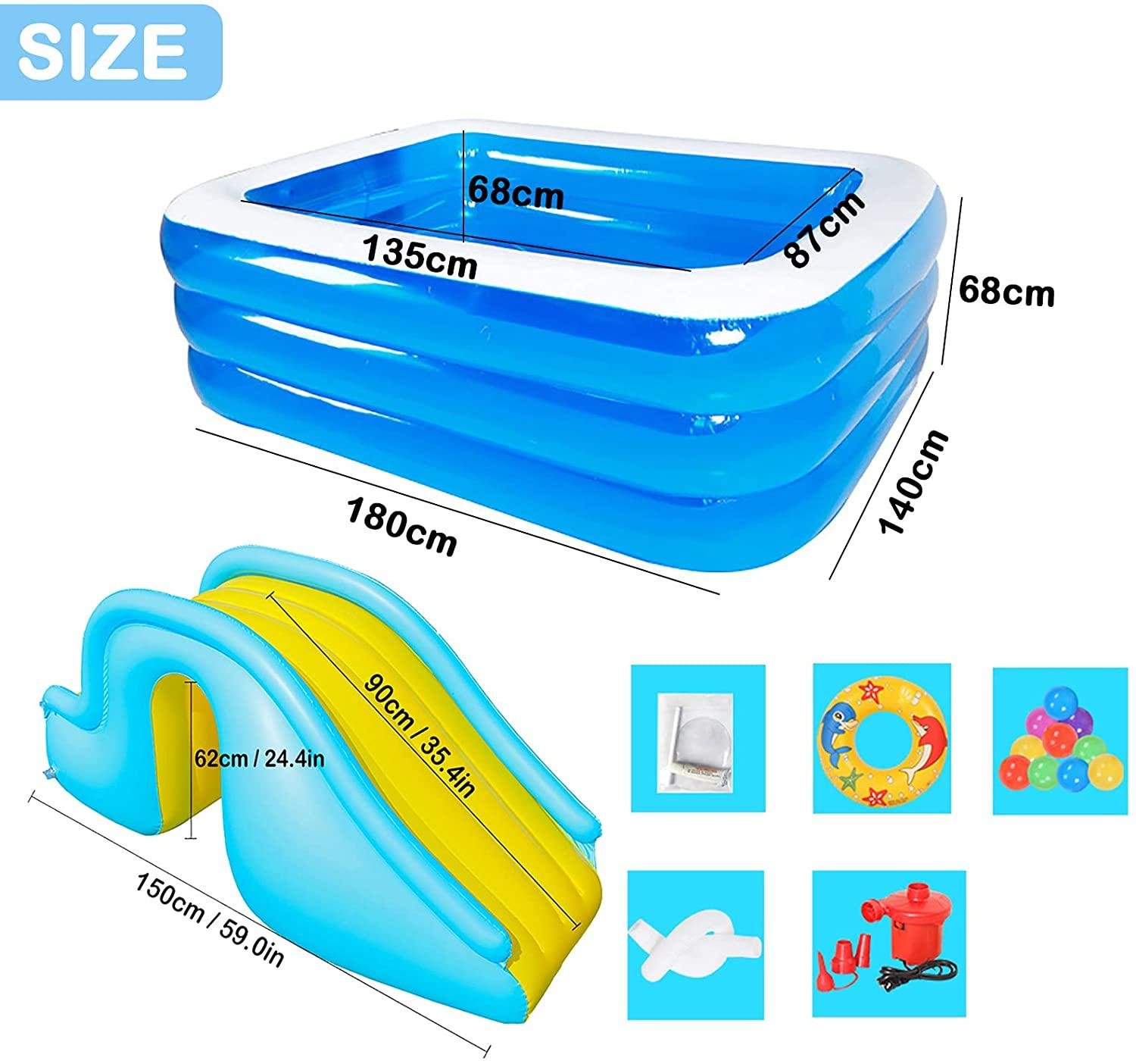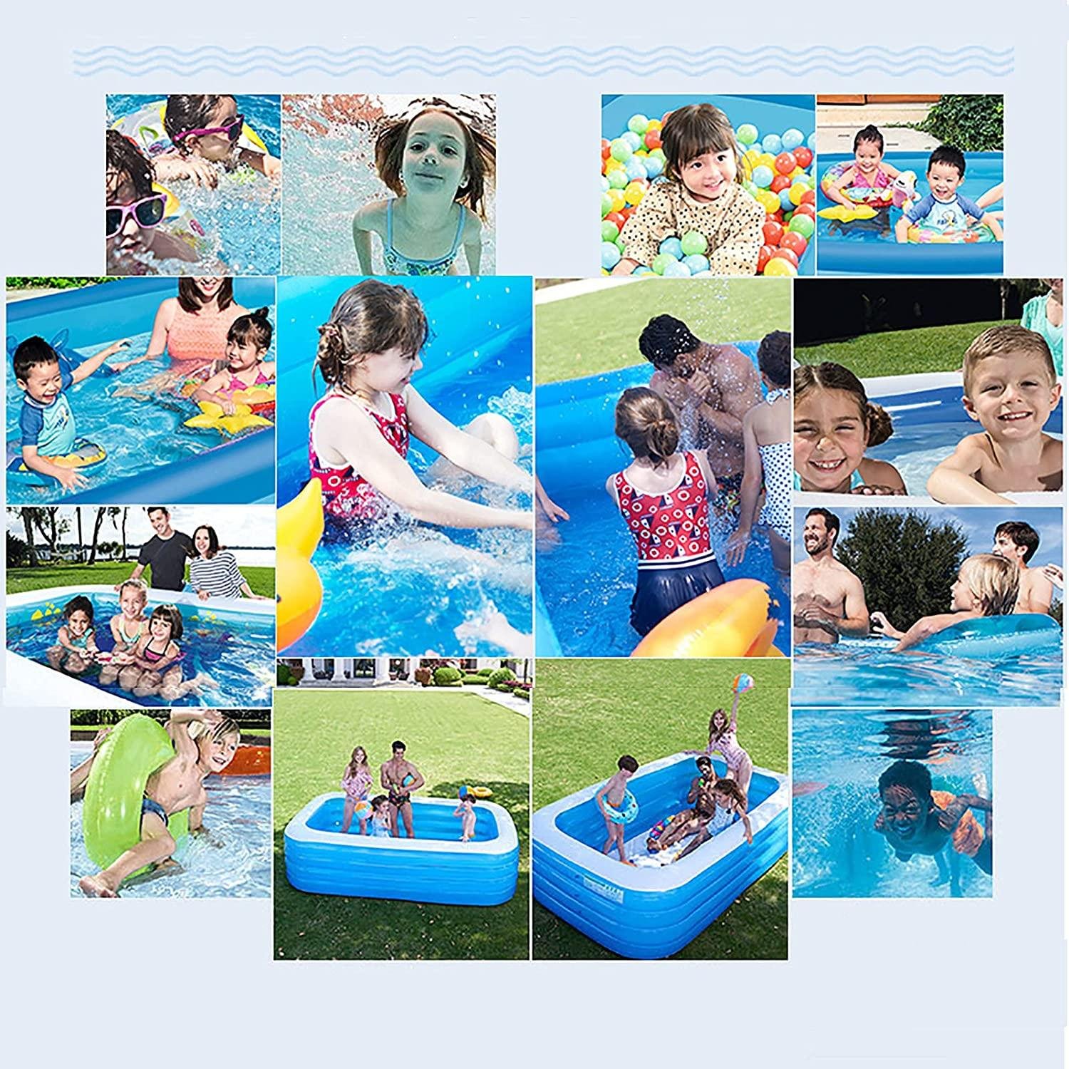 • ☑ Whole Family-Size Inflatable Swimming Pool: Inflatable kiddie pool helps you enjoy a great time with the whole family. You can enjoy your splashing pool party in the backyard! Also, it can be easily turned into an indoor ball pool for kiddie.