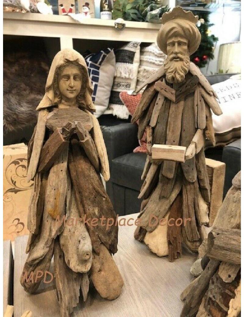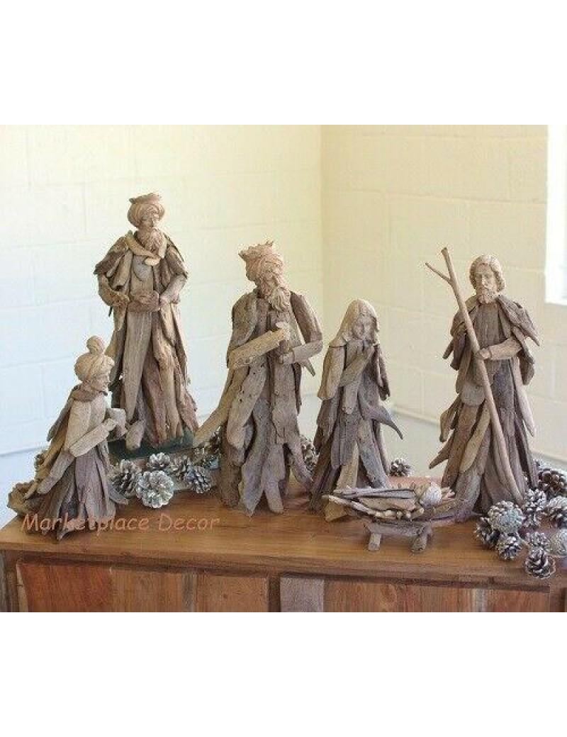 Driftwood Nativity Set Scene Large Christmas Handcrafted Holiday Decor~ Set Of 6