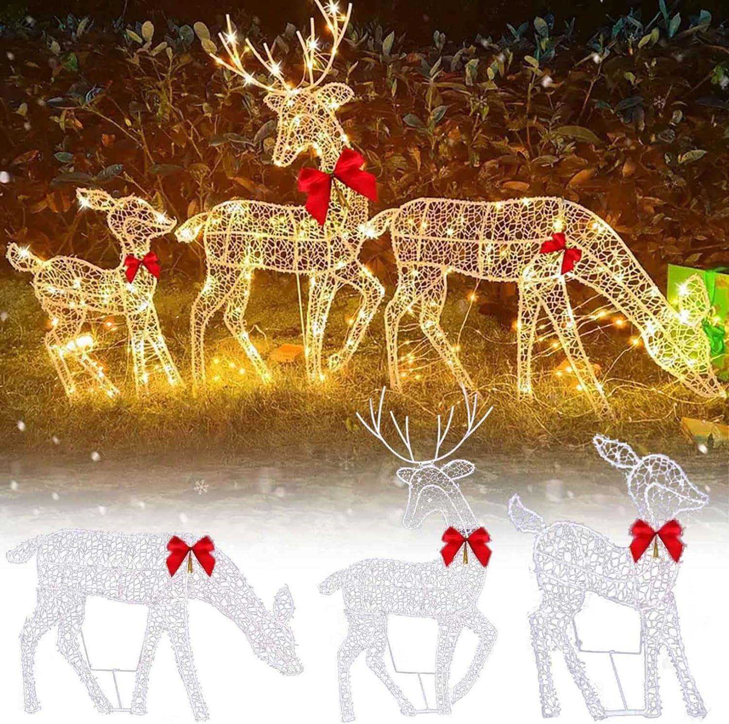 Christmas New Outdoor Decoration Luminous Deer Three Piece Set Gardening Decoration Ornaments Outdoor Christmas Decoration Reindeer Home Yard Decoration