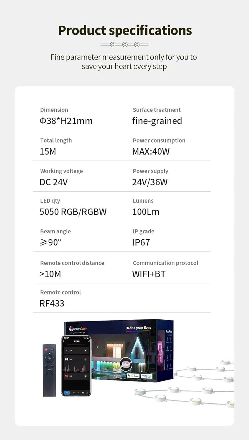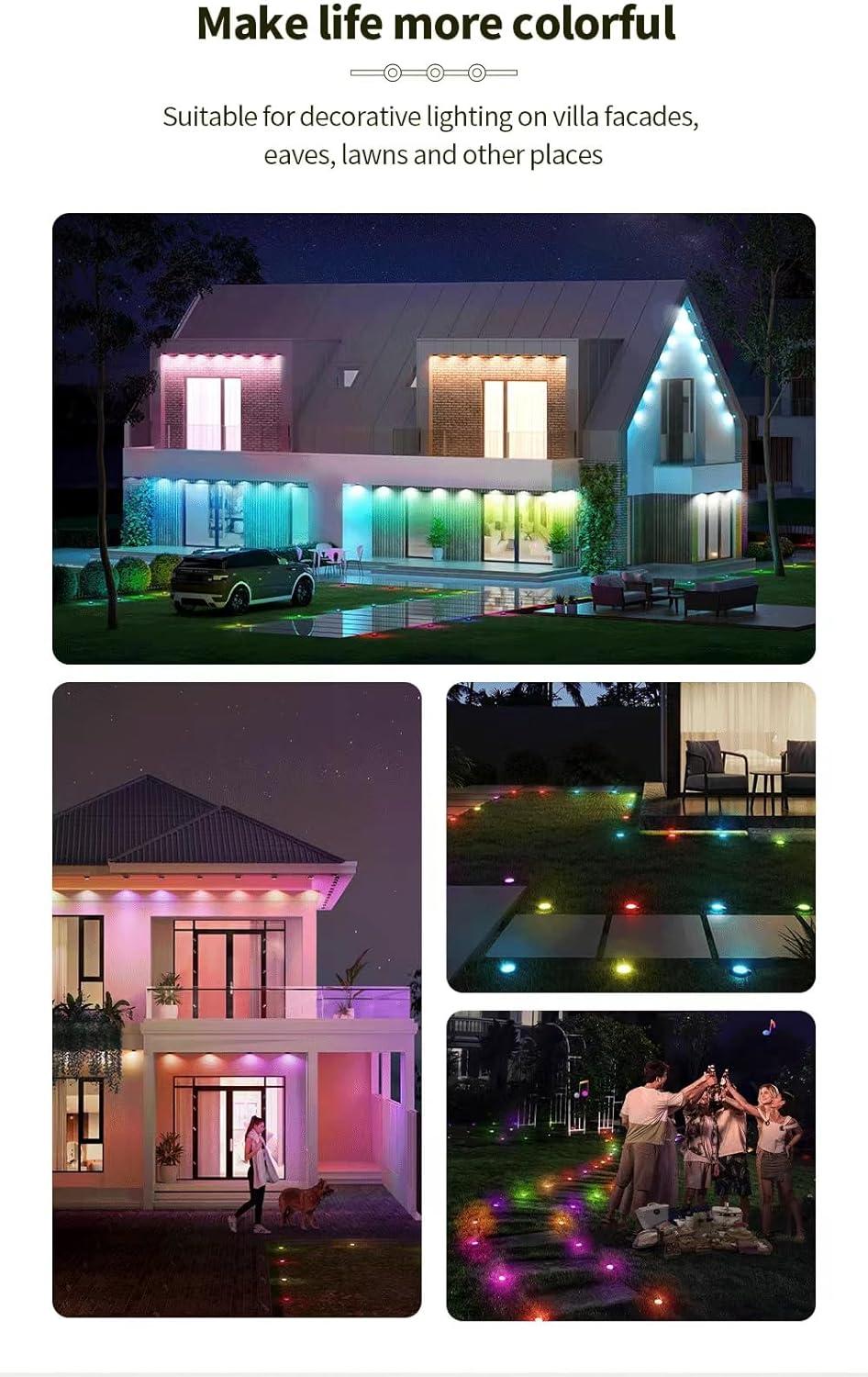 - Smart App & Voice:Use APP to Control Colors of Each Permanent Outdoor Light Independently and Set Timer Function to Light UP Your House at Night.