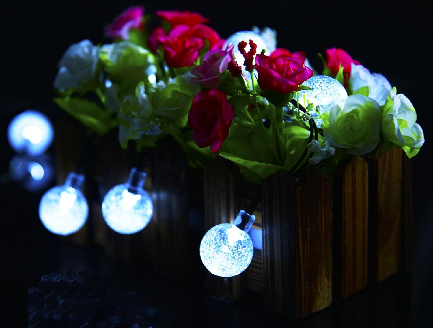 ECOLINEAR Globe String Lights 21ft 30LED Crystal Balls Waterproof Solar Powered Lights for Garden Holiday Party Decorations (Cold White)