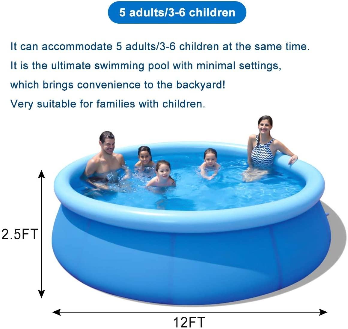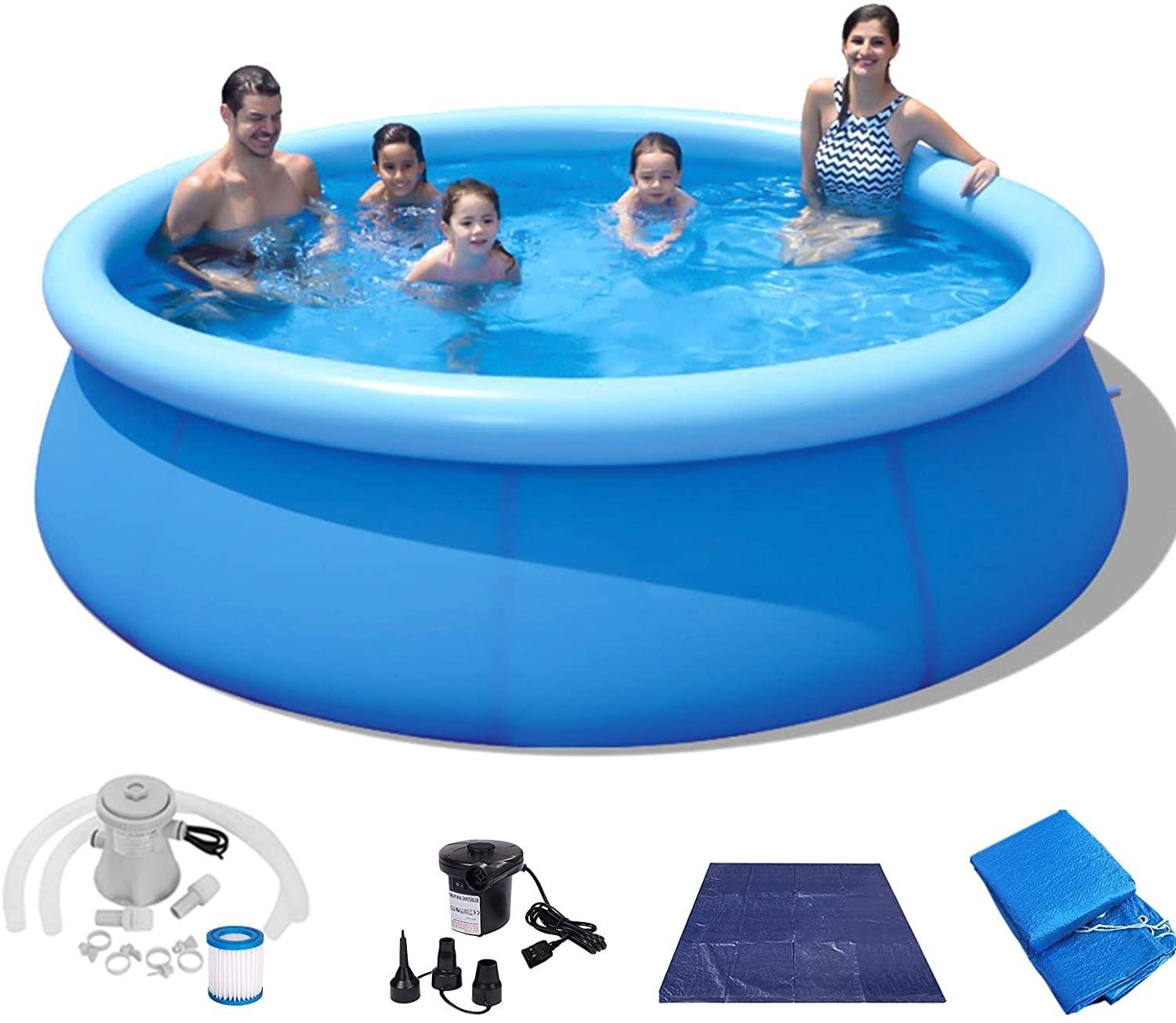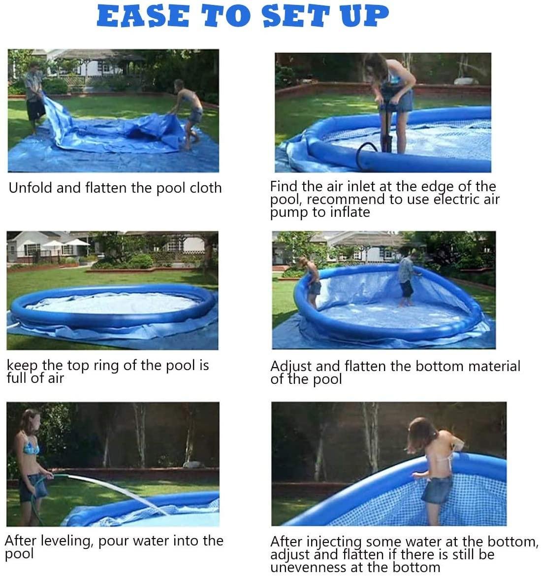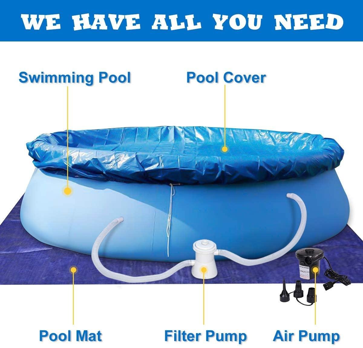 • 【WE HAVE ALL YOU NEED】- We have all the swimming pool equipment you need. 12ft x36inch portable swimming pool with filter pump, electric air pump, pool cover and ground tarp, splash the day away in the comfort and privacy of your own backyard with this inflatable pool.