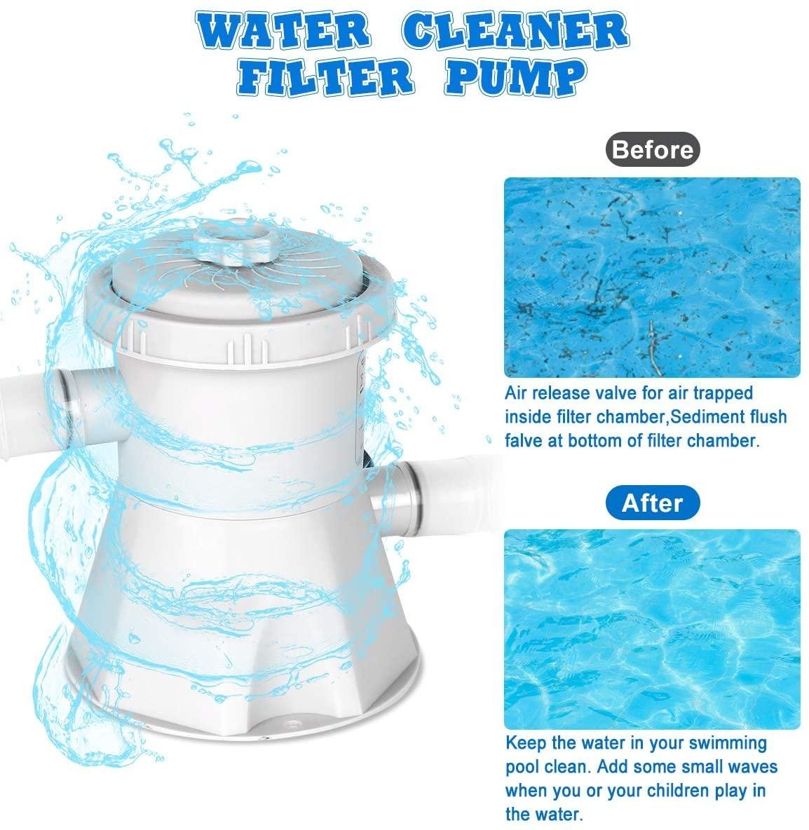 • 【EASY TO SET UP】- Sets up in only 5 Minutes! Spend Summer Splash Fun for hours! For saving your time to set up this pool, we add an electric air pump for you, then you can get a perfectly inflated swimming pool within 5 mimutes!
