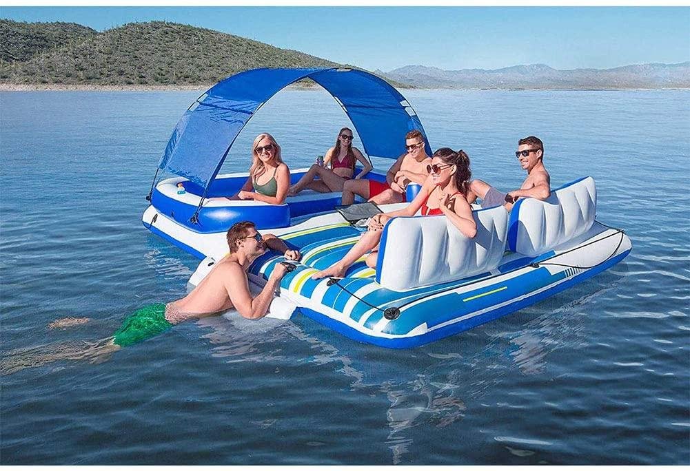 FEENGG Floating Island Raft, Giant Inflatable Pool Float, Includes Canopy, Cupholders, & Cooler Bag, Lounge Fits Up to 6 People,Great for Pool, Lake