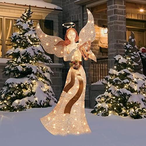 Holiday Home 5 Foot Lighted Angel with Horn Sculpture Decoration Pre Lit Display Outdoor Christmas Yard Decoration Garden Yard Art Holiday Winter Display