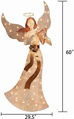 Global Merchandise Holiday Time Light Up Glitter Christmas Angel Outdoor Decoration 60inch, Yellow Brown