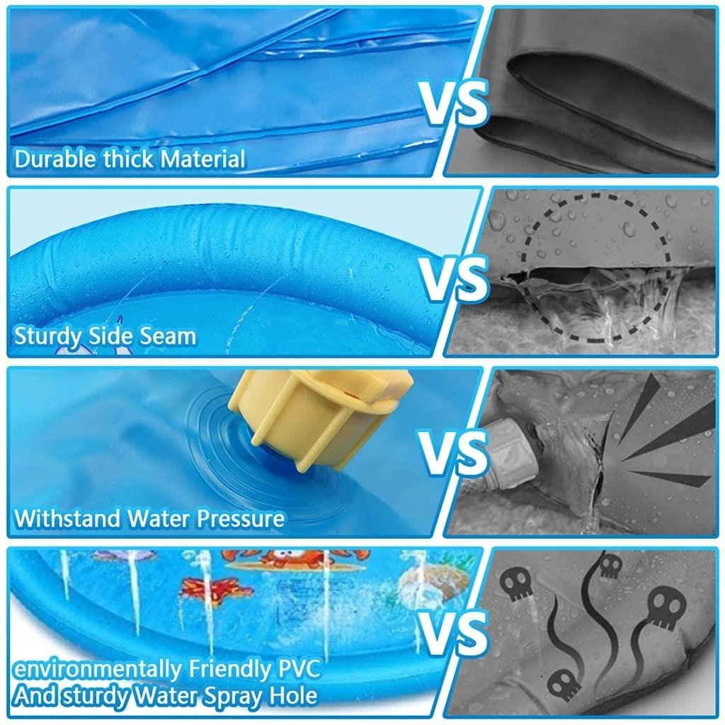 • 4.Suitable for Kids:So fun play mat! Get wet and splashy out in the hot sun, every toddlers who love water age 3-5 will crazy about it.