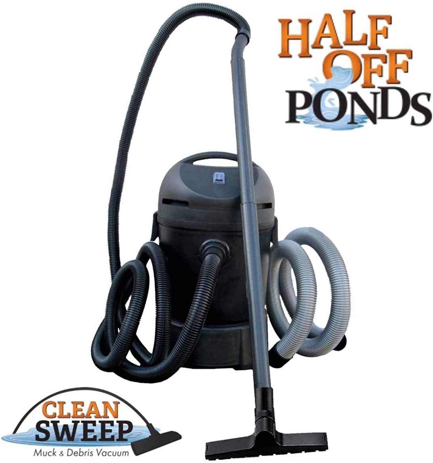 HALF OFF PONDS CleanSweep 1400 Pond Vacuum with a 13′ Intake Suction Hose, 4 Extension Tubes, 3 Vacuum Nozzles, a 6.5 Foot Output Hose, and a Debris Collection Bag