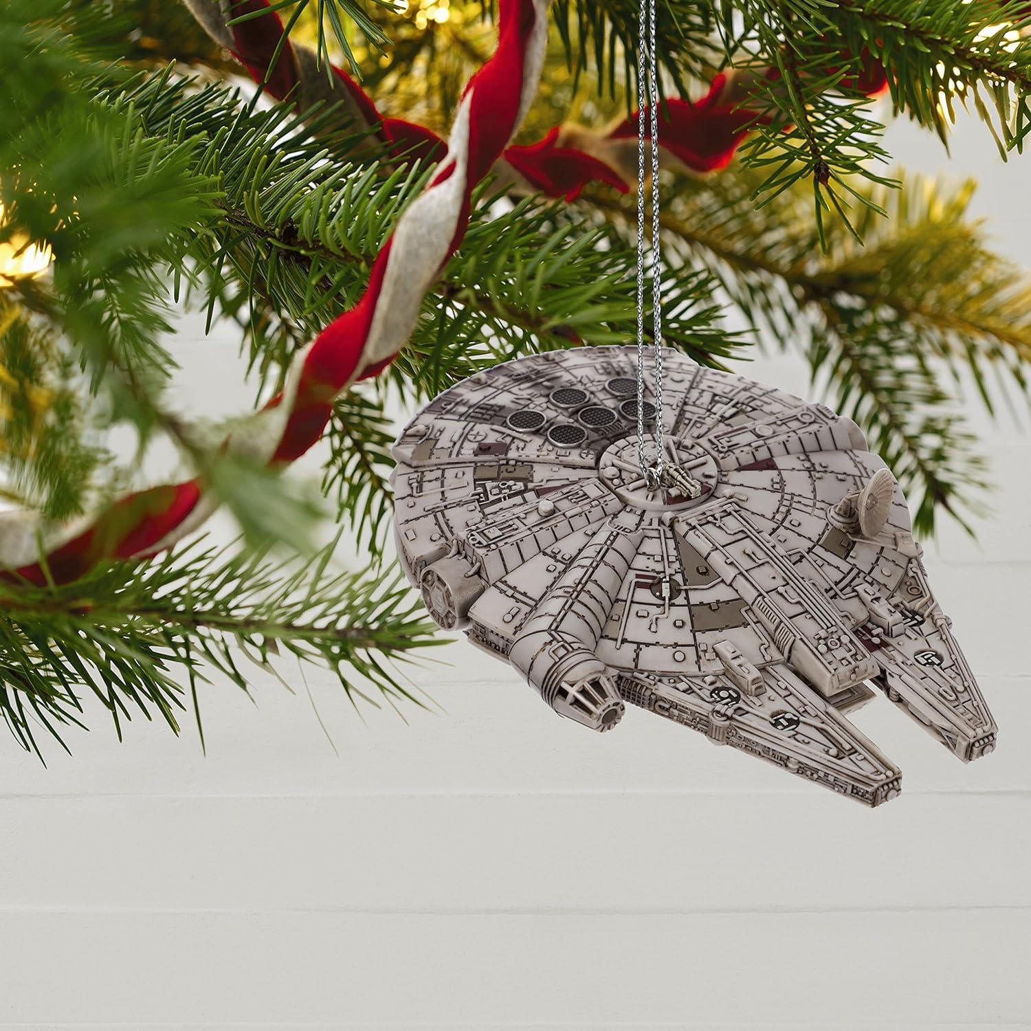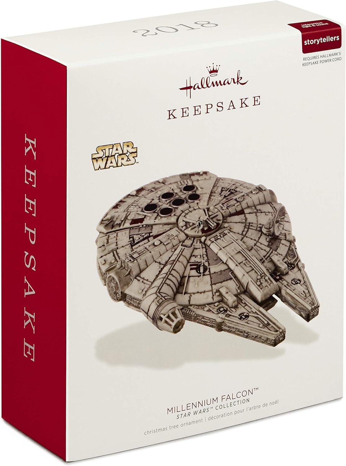 - Soar into the holidays with the fastest hunk of junk in the galaxy. This Millennium Falcon Christmas ornament performs a sound and light show when connected to Hallmark’s Keepsake Power Cord, sold separately. Plus, it interacts with other Star Wars Storytellers ornaments, each sold separately.