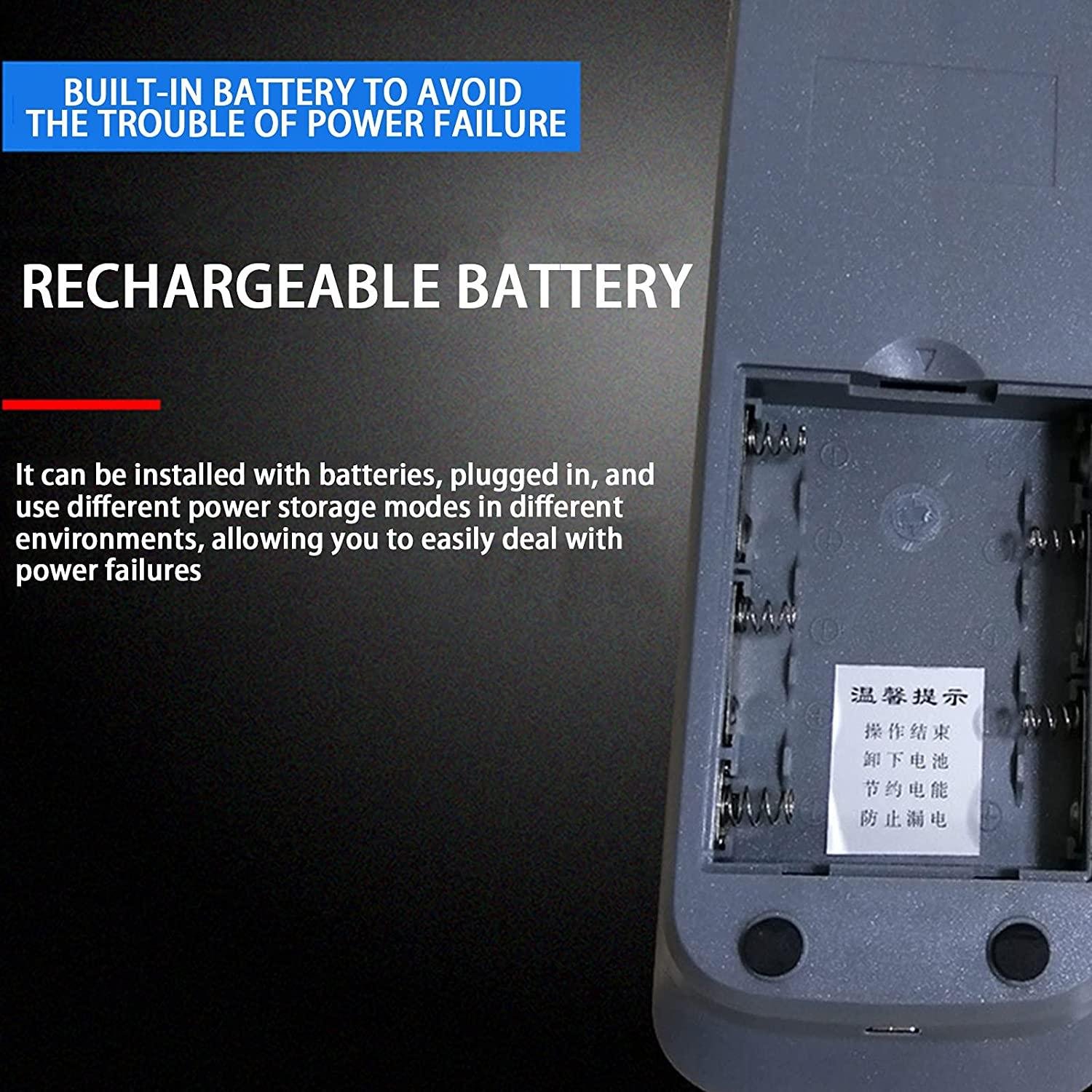 • Built-in battery, eliminating the trouble of power failure, rechargeable battery, can be installed battery, plug-in use, use different power storage modes in different environments, so that you can easily deal with the trouble of power failure