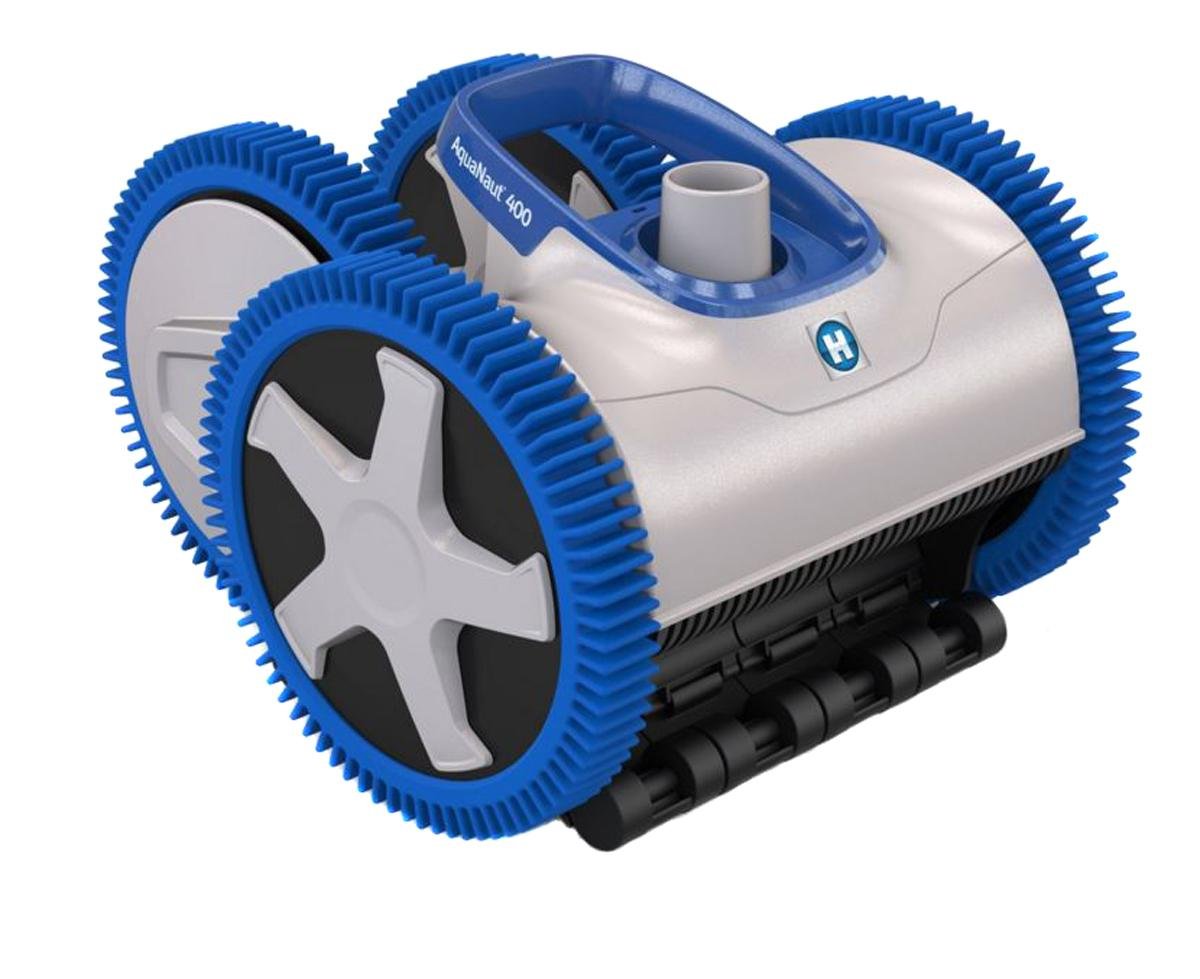 AquaNaut 400 automatic suction pool cleaners are the only 4-wheel drive suction cleaners available. Patented V-Flex? variable vane turbine technology handles larger debris without clogging and maximizes suction power at virtually any flow, making them ideal for use with variable speed pumps. With 4-wheel drive capability, all-terrain tires and adjustable roller skirt, AquaNaut 400 can expertly clean pools up to 20? x 40?, including deep ends, without clogging or getting stuck.