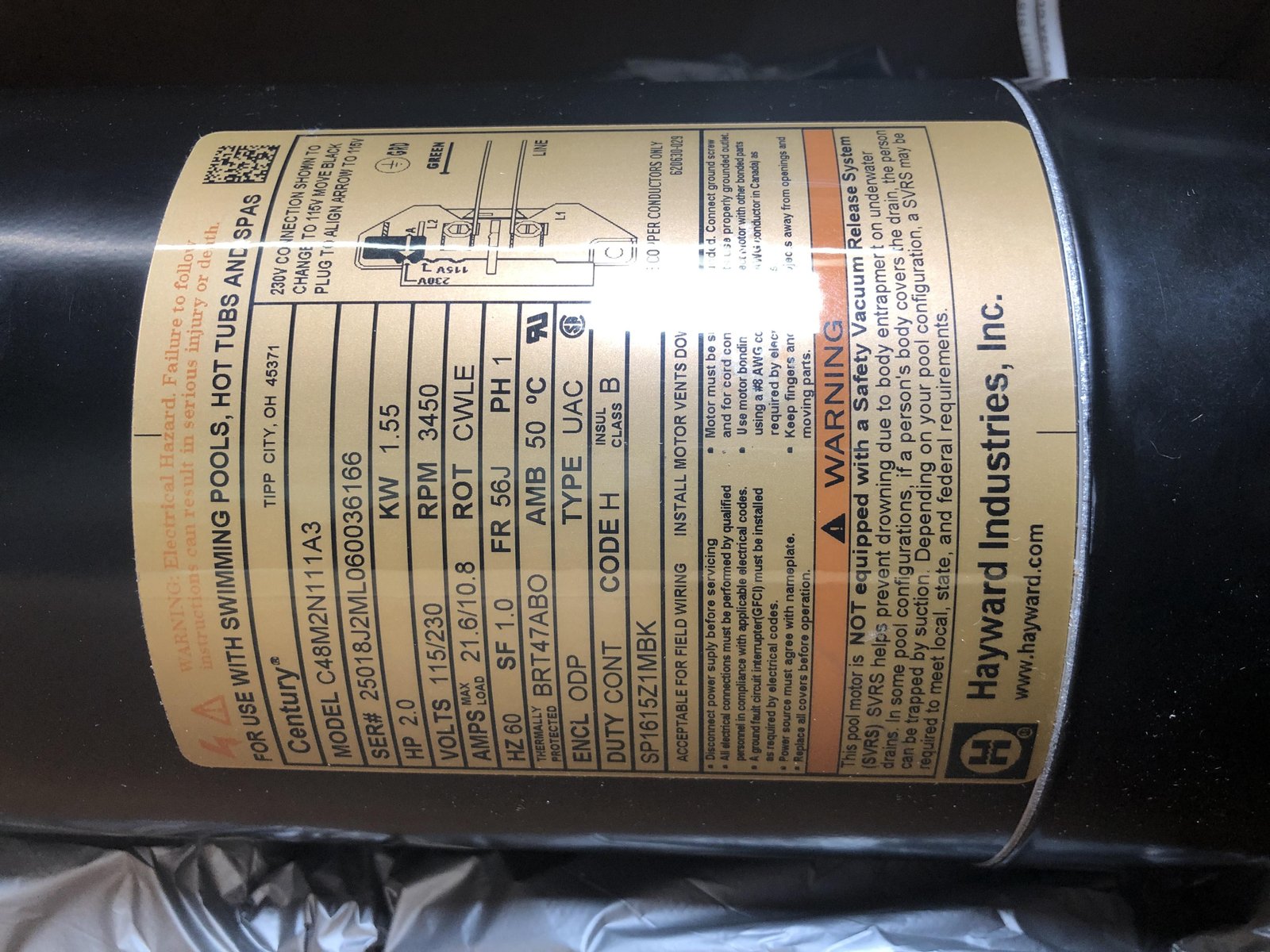 Hayward SPX1615Z1M 2-HP Maxrate Replacement Motor for Select Hayward Pumps